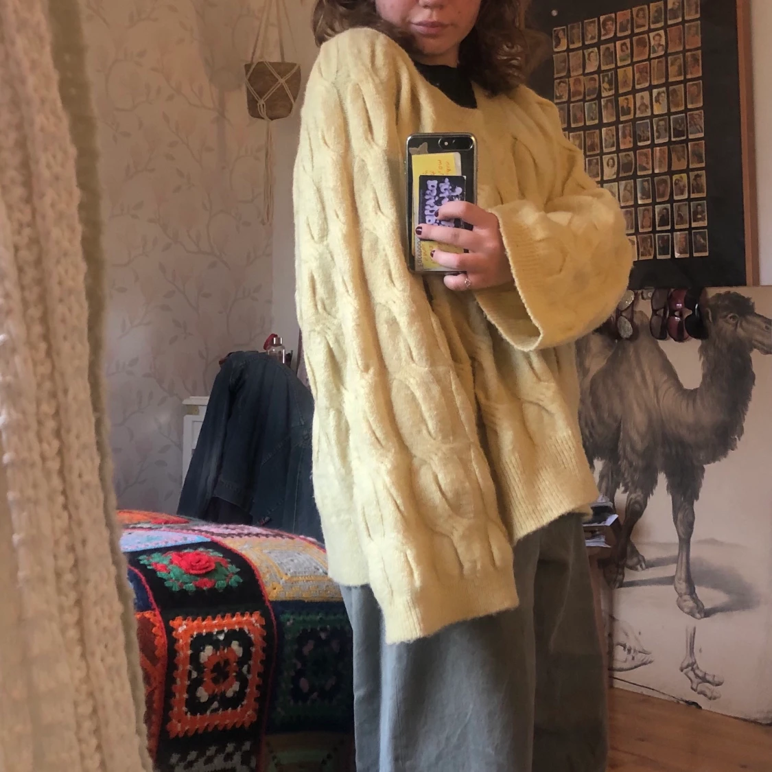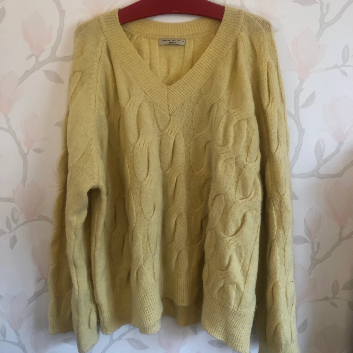 Stor och mysig gul stickad tröja. Från Ginatricot - ”Premium Quality”. Den är storlek M med 30% ull i. Använd en gång! 🐑