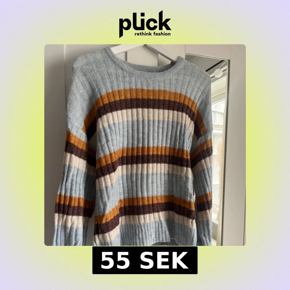 Säljer en ribbad stickad tröja med breda ränder i pastellblått, senapsgult, brunt och beige från Ichi. Tröjan har rund halsringning och långa ärmar. Perfekt för dig som gillar färg och mönster! Väldigt snyggt med en vit underdel, typ en kjol eller linnebyxor. Skriv för fler bilder🩵