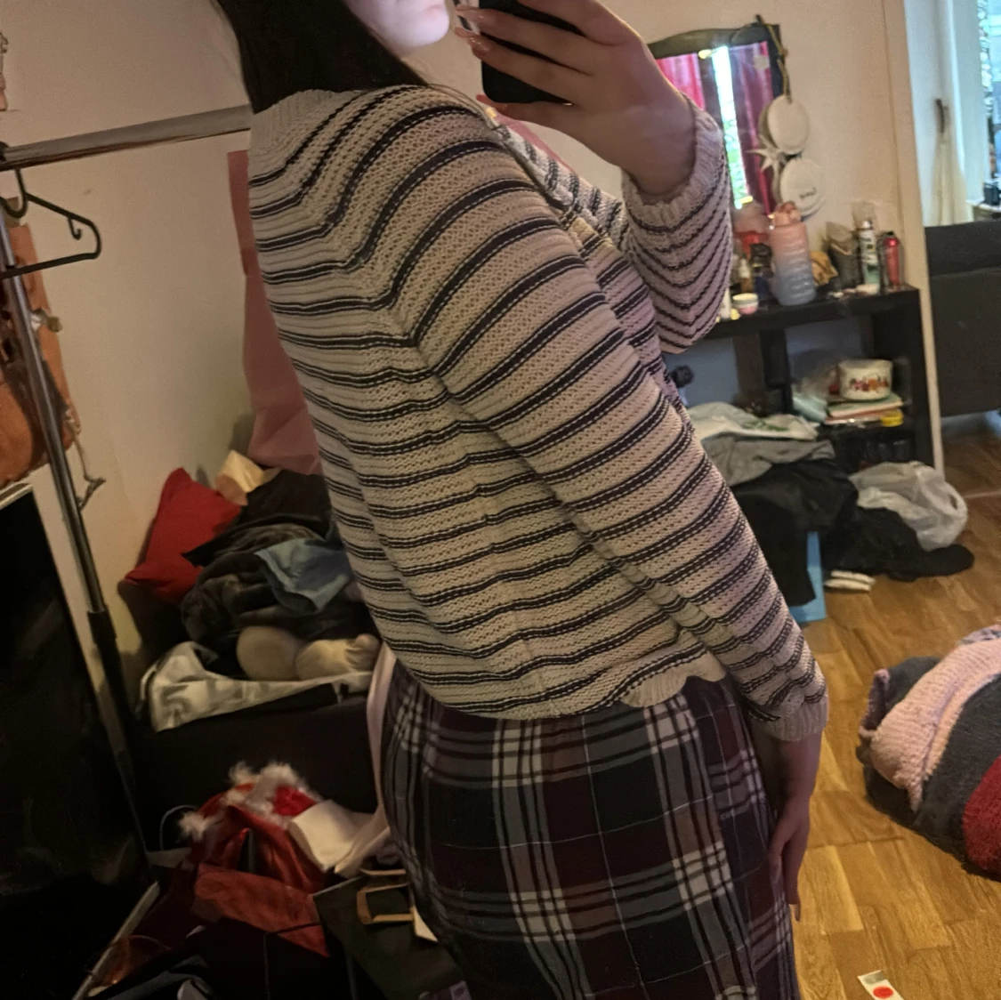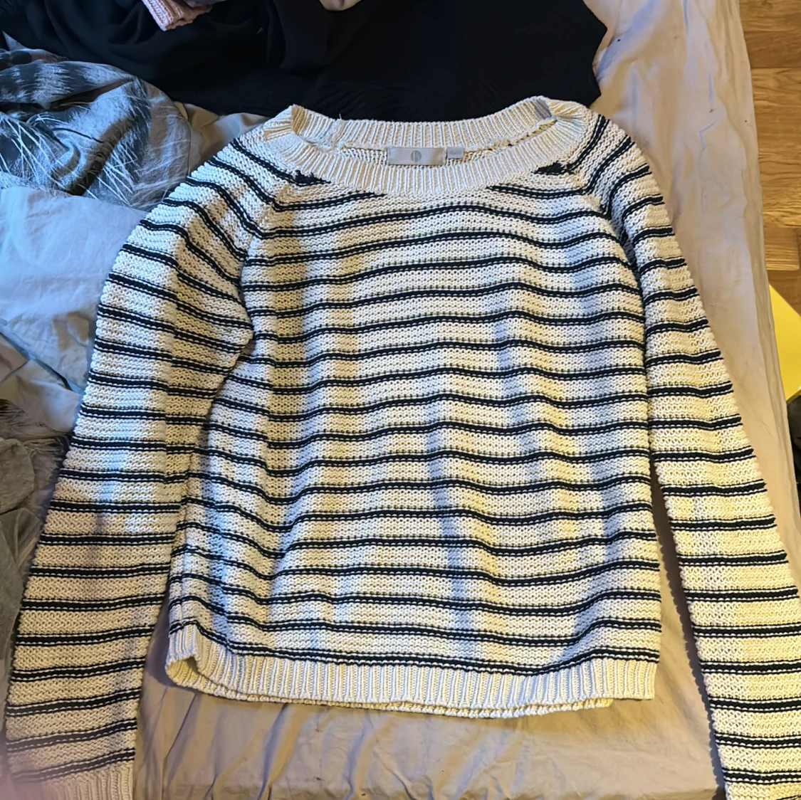 Vit svart randig stickad tröja säljer för den har inte kommit till användning (vet inte vad det är för märke