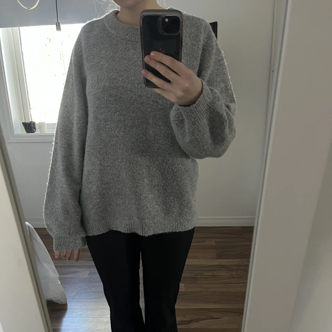 Grå stickad tröja från Object. Sparsamt använd. 130 kr + frakt❤️
