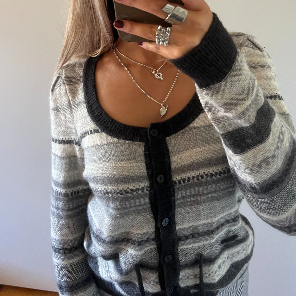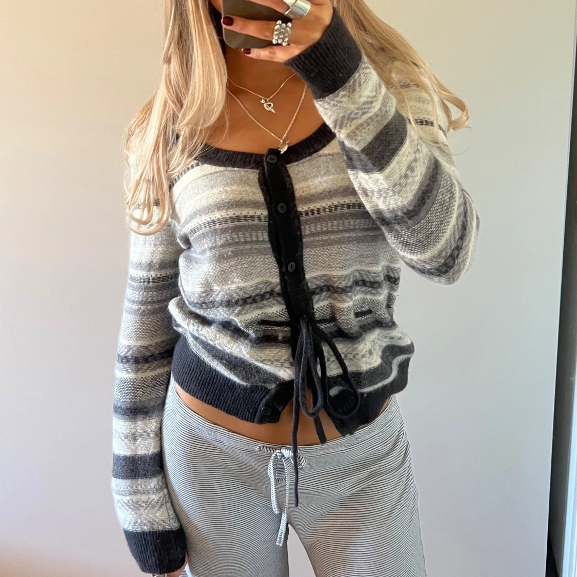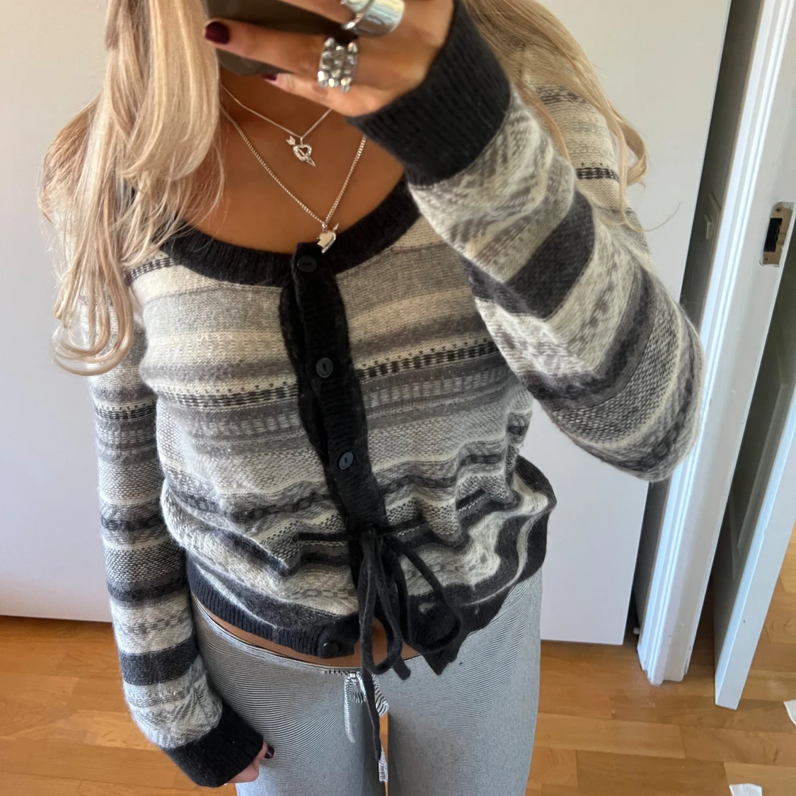 Söt kofta med axelvaddar och knytning i midjan, storlek m🖤🫧