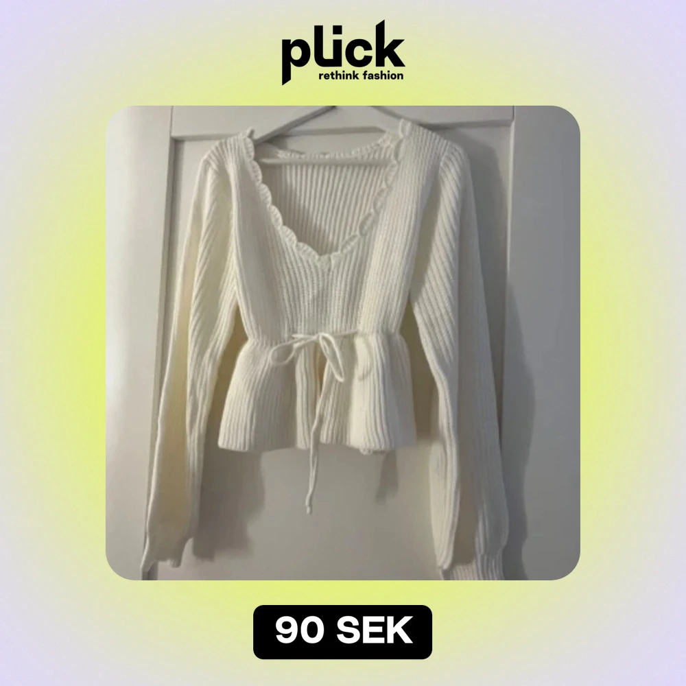 Vit stickad topp med knytning. Aldrig använd storlek L men känns som S/M🩷