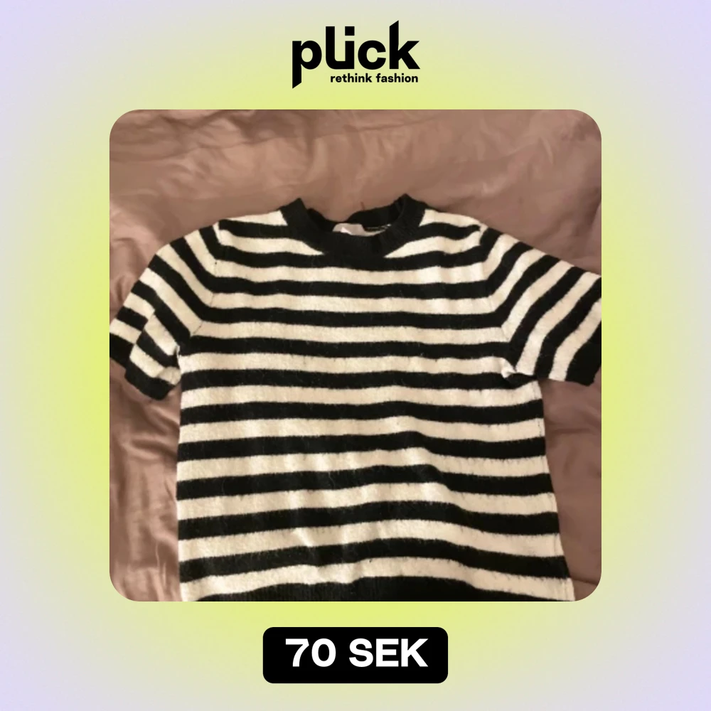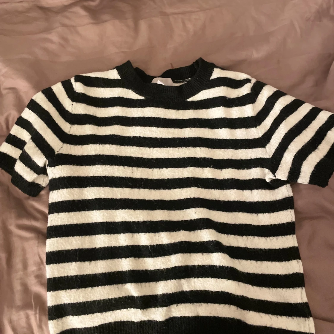 Det är en randig stickad t-shirt ifrån H&M den är nopprig så det svarta har kommit över det vita men tror det kan gå bort