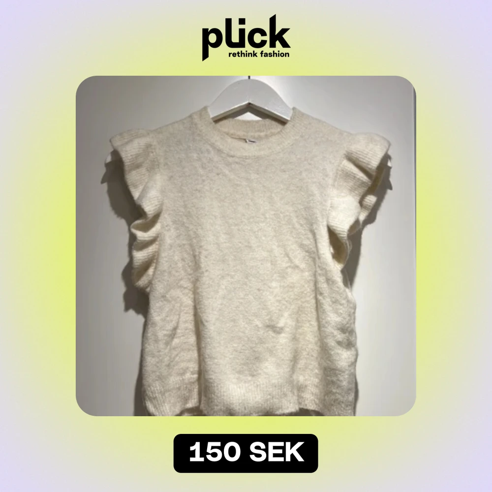 Söt stickad vit/ljus begie topp med volang ärmar. I en t-shirt modell.