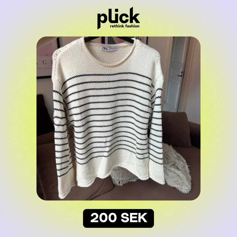 Säljer denna randiga stickade tröja från Zara i storlek M🤍den är aldrig använd