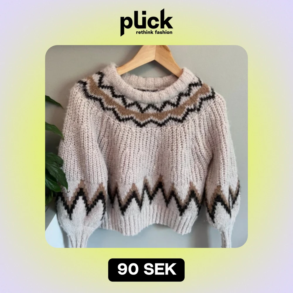 Jättefin stickad tröja! Den är lite croppad men räcker ändå ner till midjan 🌟 Lite tjockare och tät stickad vilket gör att den är perfekt att ha på kyligare kvällar när man inte vill ha jacka!