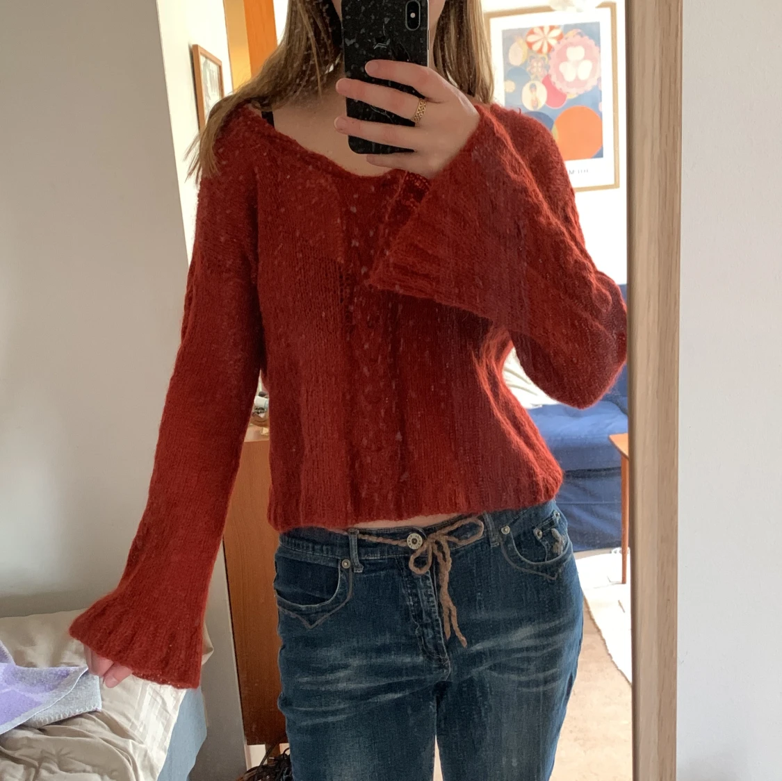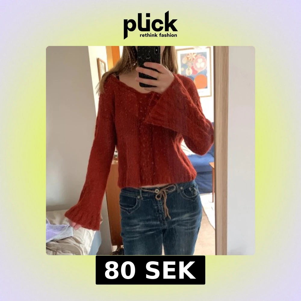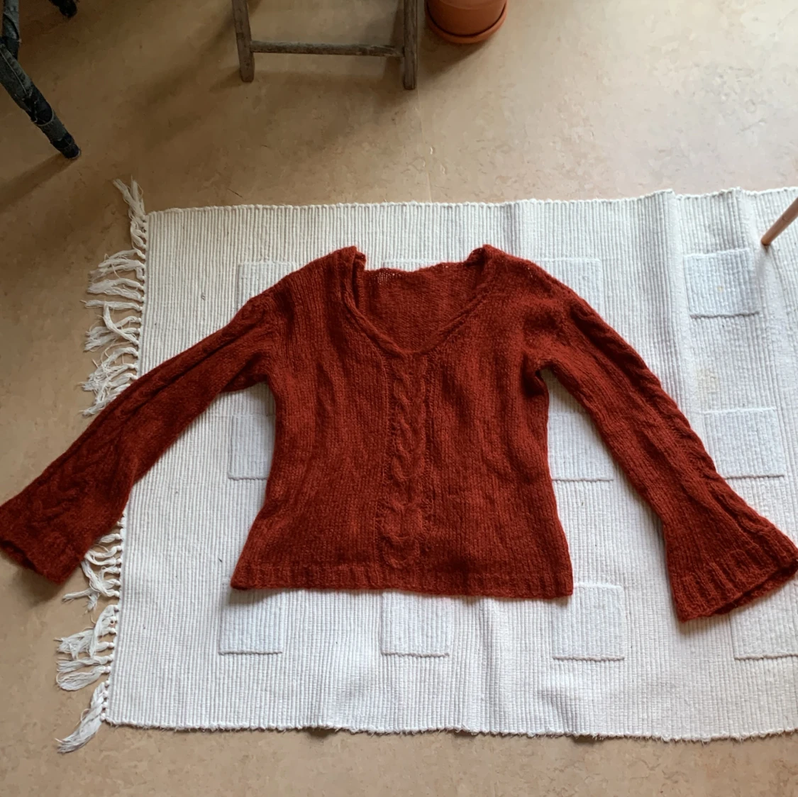 Egen stickad röd tröja med flared armar. Storlek M. Skriv vid frågor✨