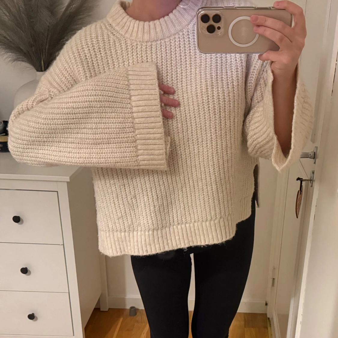 Så fin beige stickad tröja som inte sticks!!😍🤍