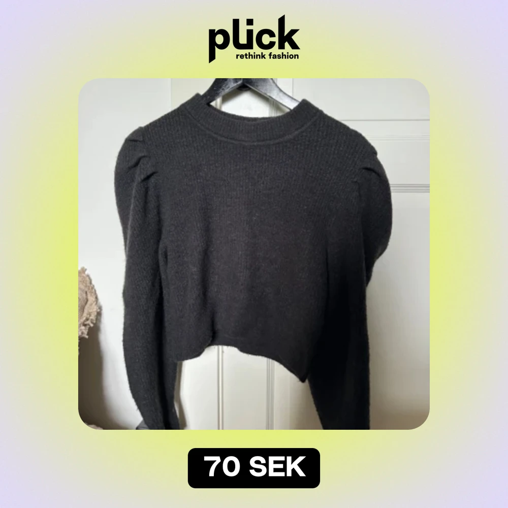 En stickad tröja med puffiga armar. Super fin tröja som är i mycket bra skick. Inga defekter. Den är lite svart grå. Skriv om ni har frågor eller vill diskutera pris🩷