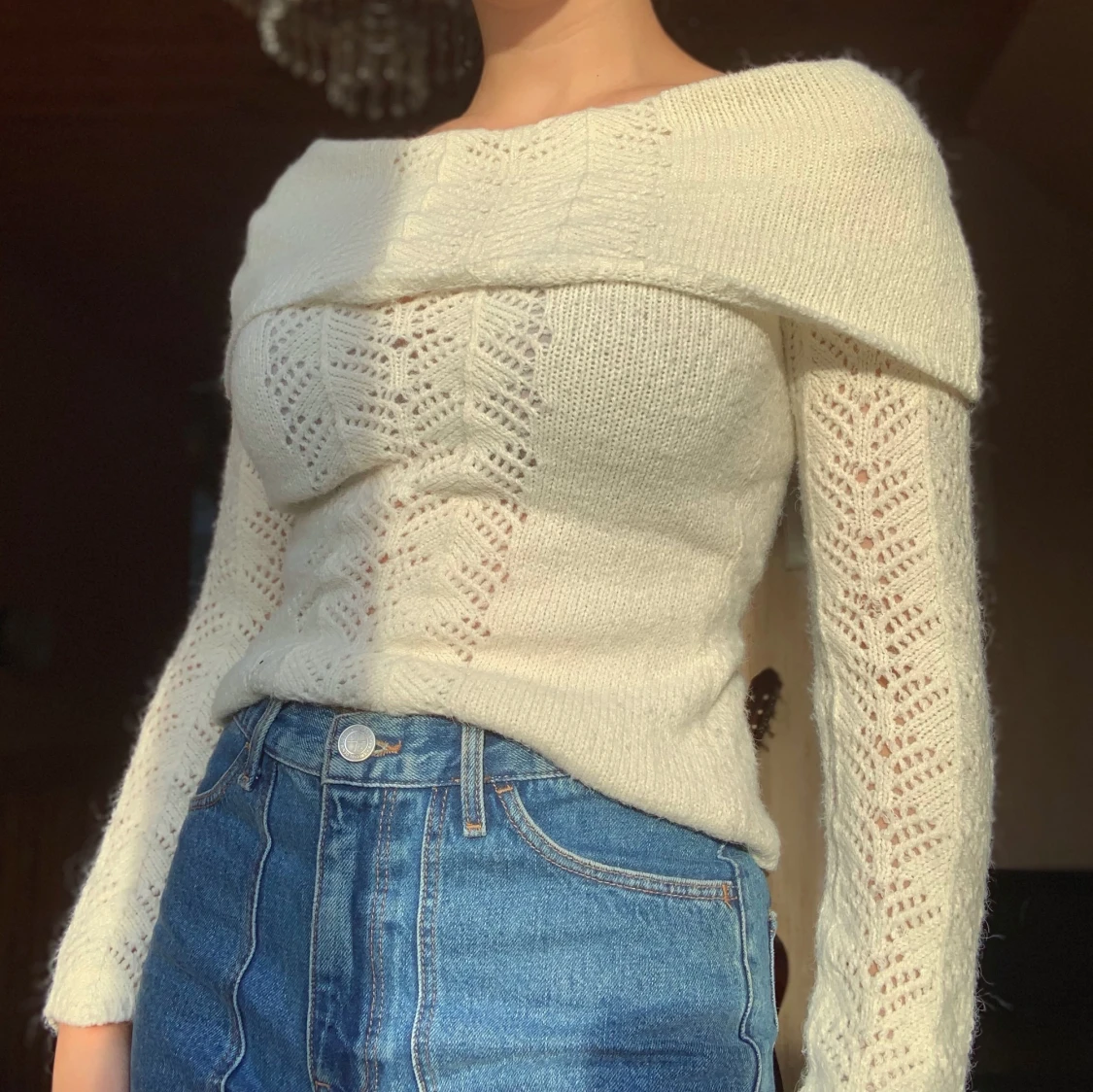 Superfin vit stickad off shoulder tröja perfekt för hösten och vintern🍁🤩 Frakt 50kr✨ men kan även mötas upp