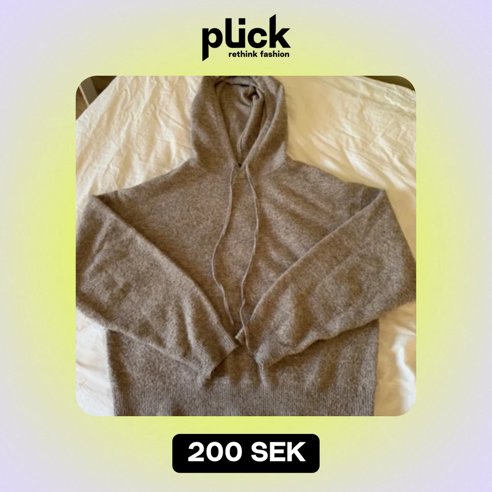 En stickad tröja med luva. Använd endast ett fåtal gånger så bra skick. Den är nopprig men det är inget man tänker på så där jättemycket då färgen är lite ”fläckig” så det smälter som in💕