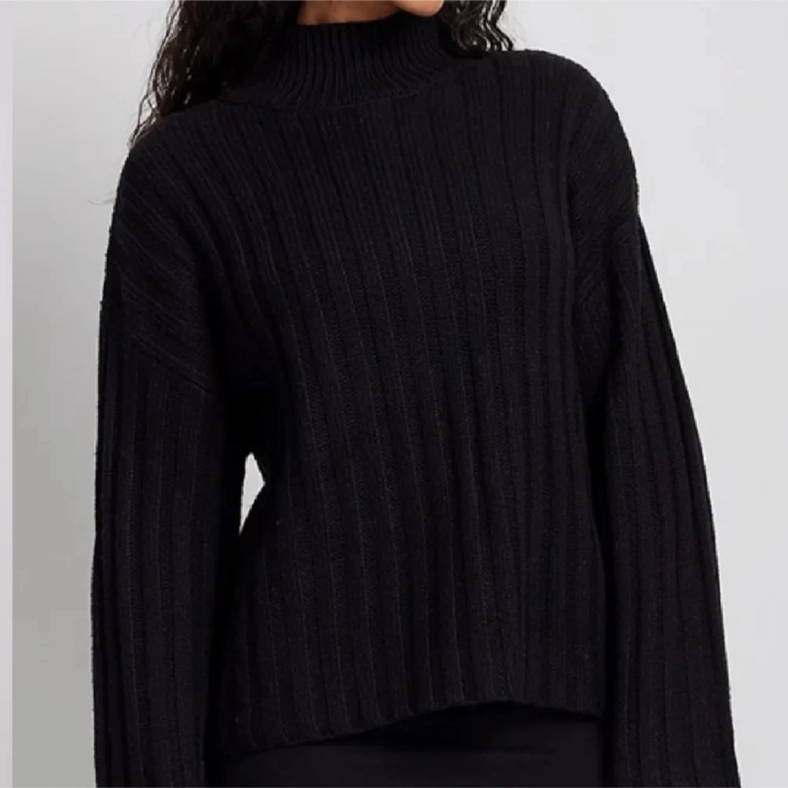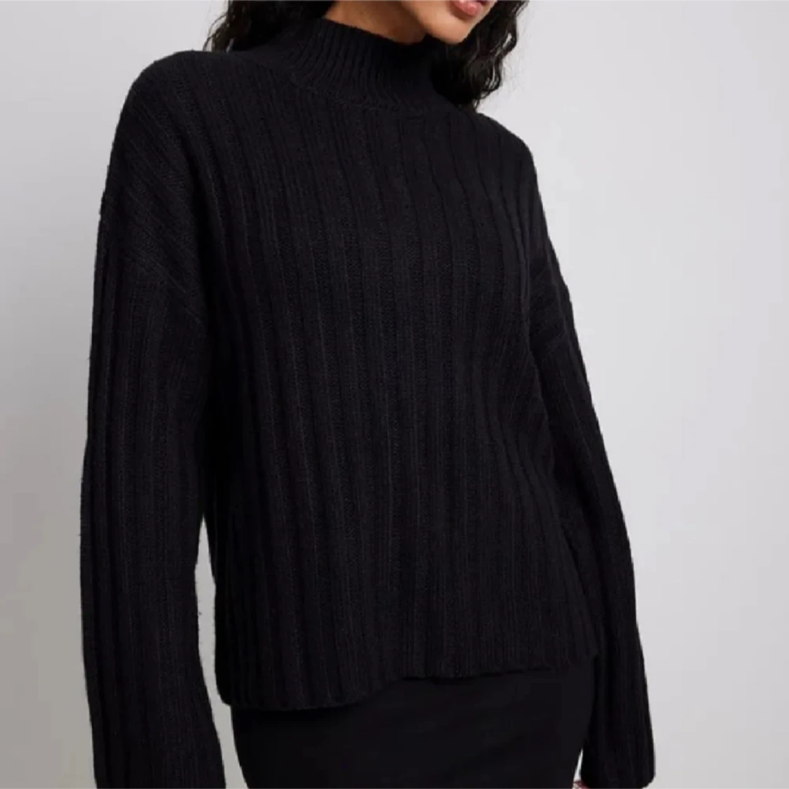 Så fin stickad tröja, i svart med polo. Storlek xs bra skick.