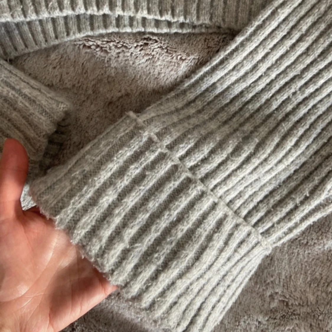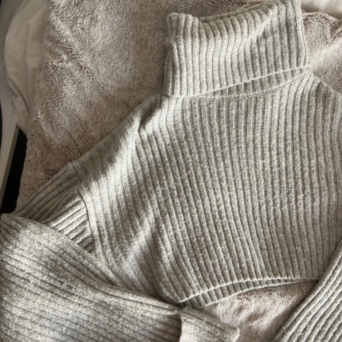 Grå stickad tröja med polo krage och utsvängda armar. Croppad i modellen och super varm och mysig!! Säljs då d ej kommer t användning. Endast en defekt vid kragen. I storlek S. Hör av er vid flera frågor.