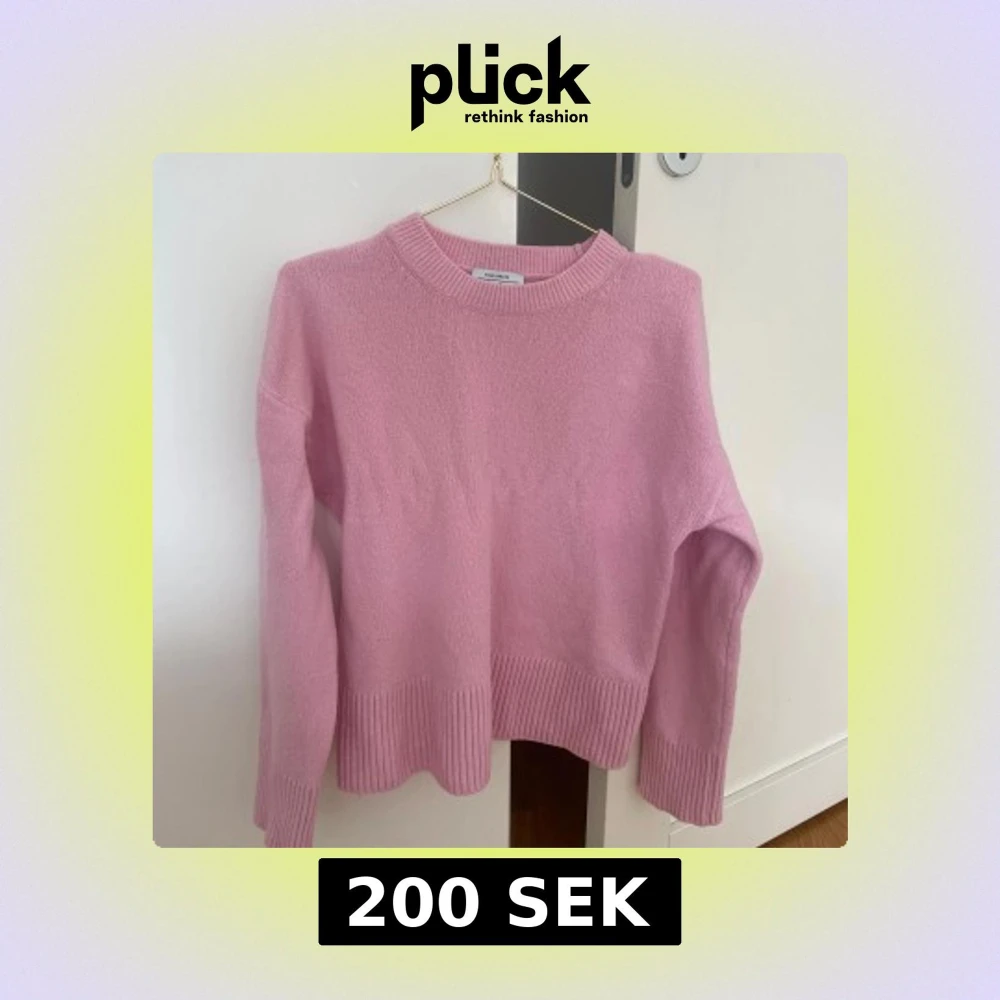 Jättefin rosa stickad tröja i bra skick! Jättefin nu till sommaren 💕 Nästan aldrig använd, märket i mitten av tröjan är från när den har hängt över ett ställ och torkat efter tvätt.