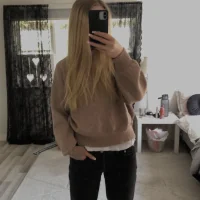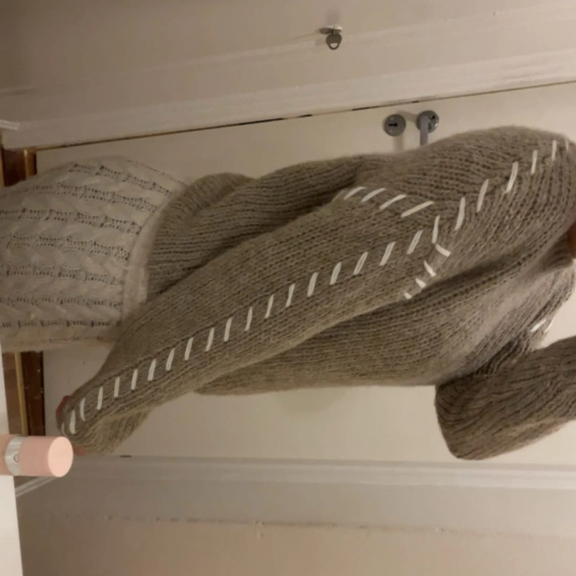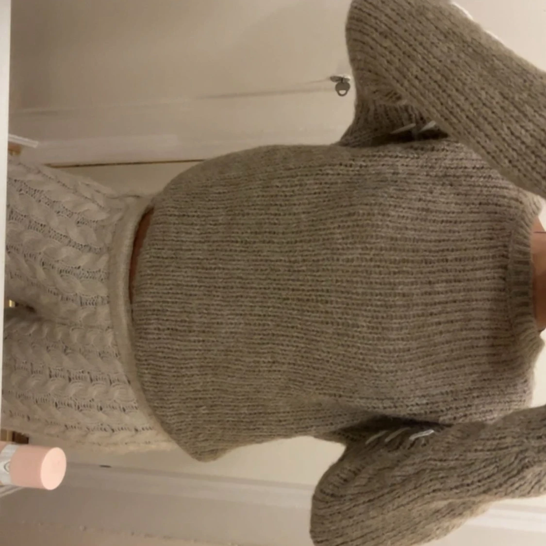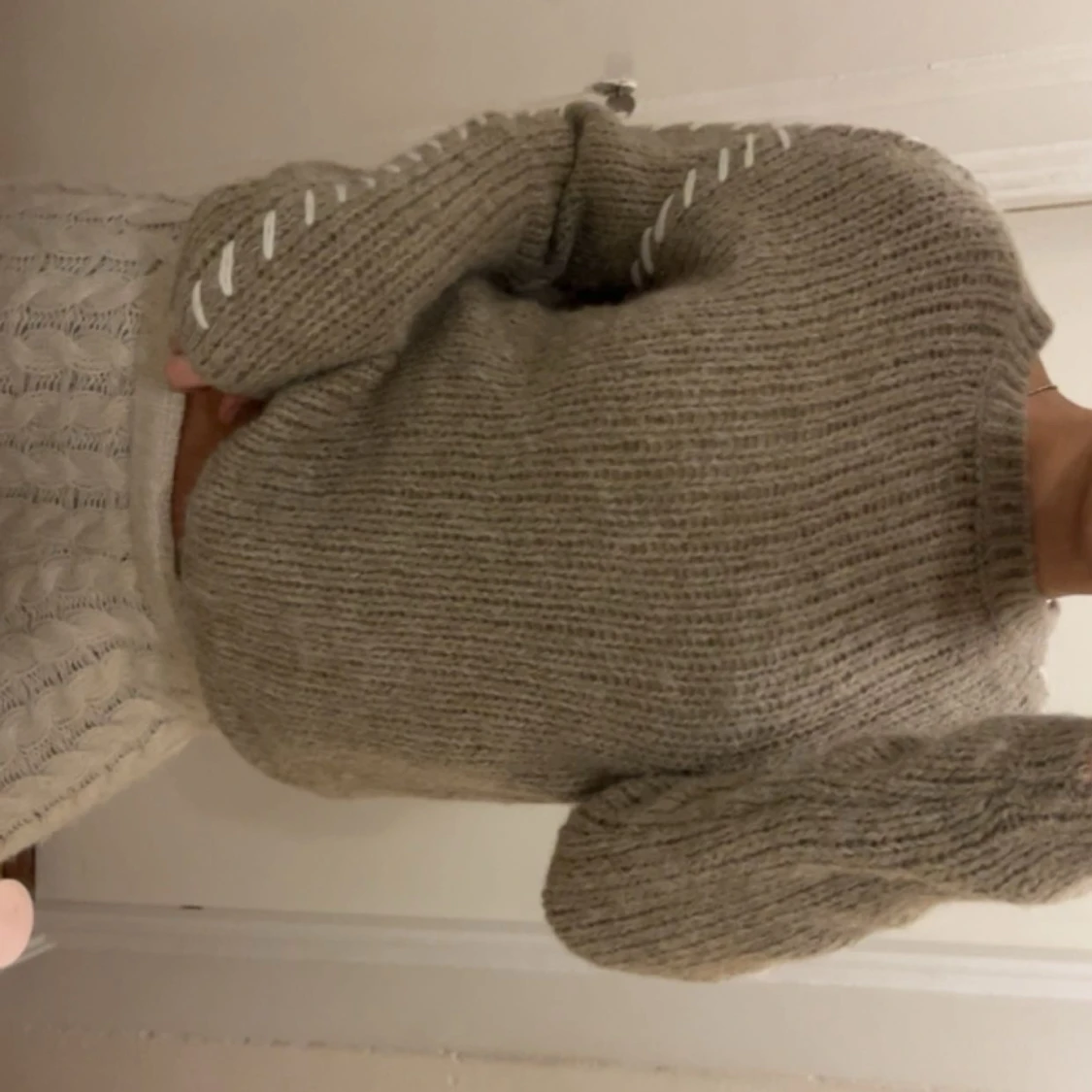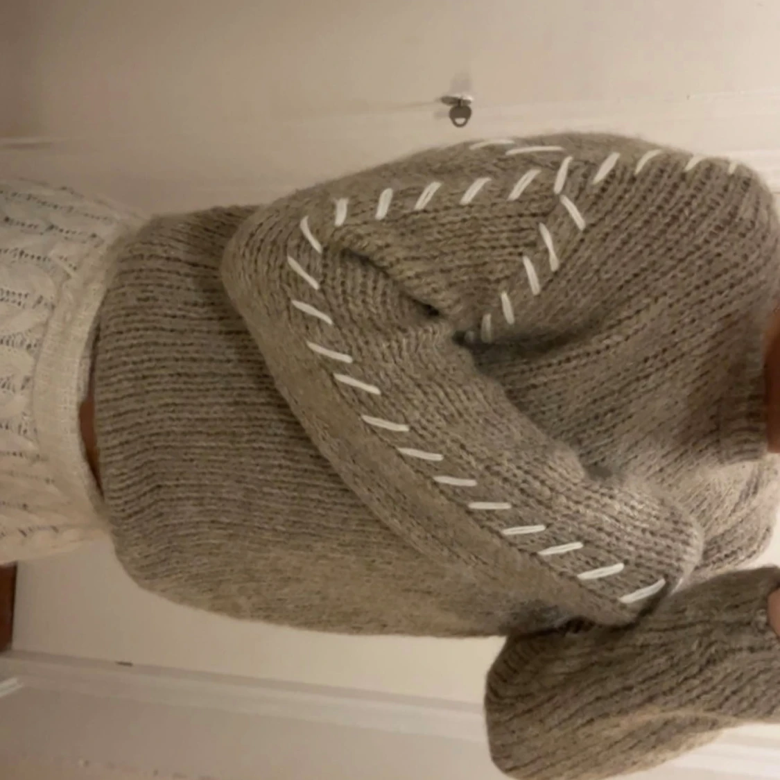 Supermysig beige stickad tröja med långärmad passform och cool vit snörning längs ärmarna. Tröjan har en loose fit och är perfekt för dig som gillar chill och stilren look. Materialet är mjukt och värmande, perfekt för kyliga dagar. Den är i storlek XS, och har aldrig använts (lapp kvar)!