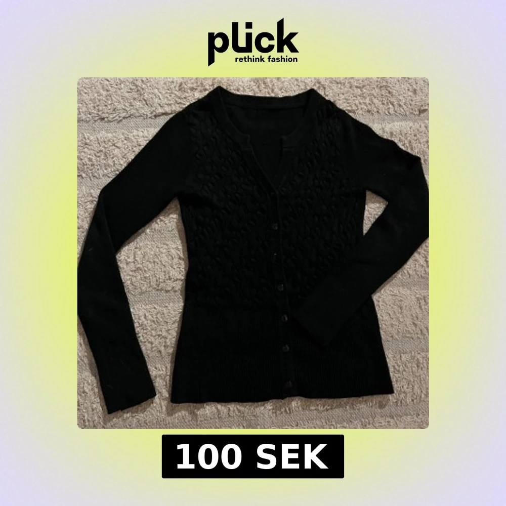 Svart stickad tröja i bra skick. Väldigt fin men säljer pga den har blivit för liten. Väldigt skönt material!