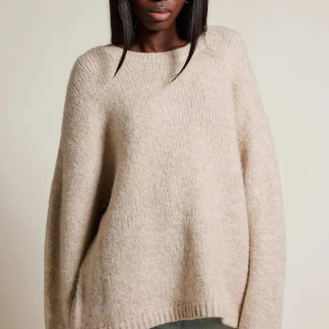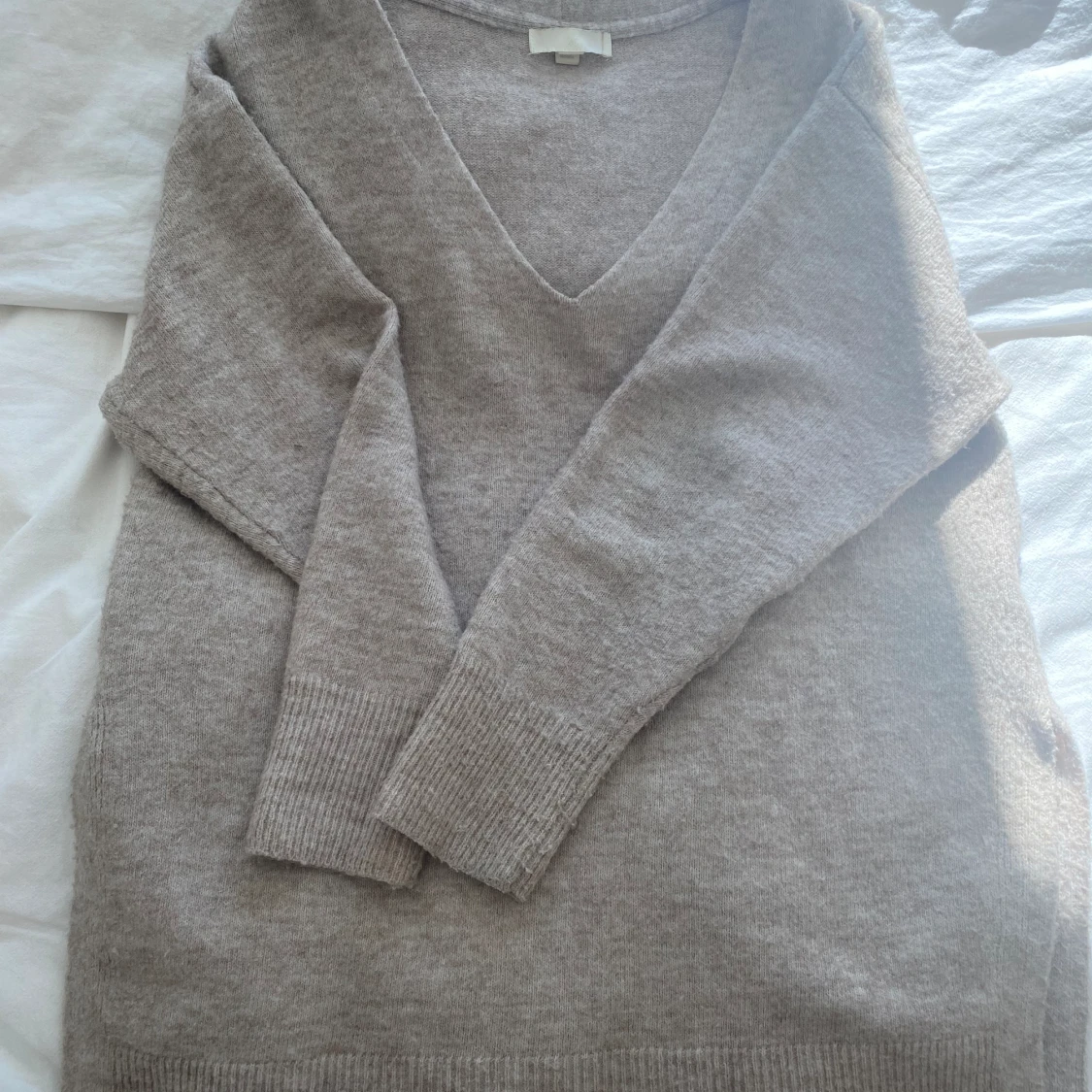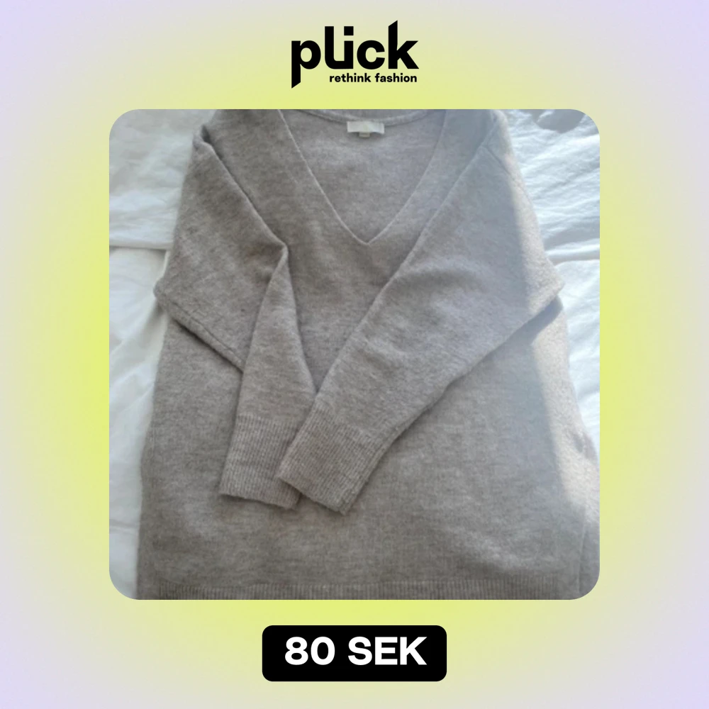Beige stickad tröja med v ring och slits i sidorna lik den i andra bilden storlek xs