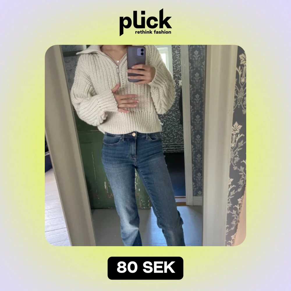 Tjock och go stickad med dragkedja i cremevit! Varm och mysig i storlek XS🍁 Köpte den i vintras men endast använt 1 gång så den är i nyskick❤️ Har du frågor eller vill ha fler bilder så är det bara att skriva!