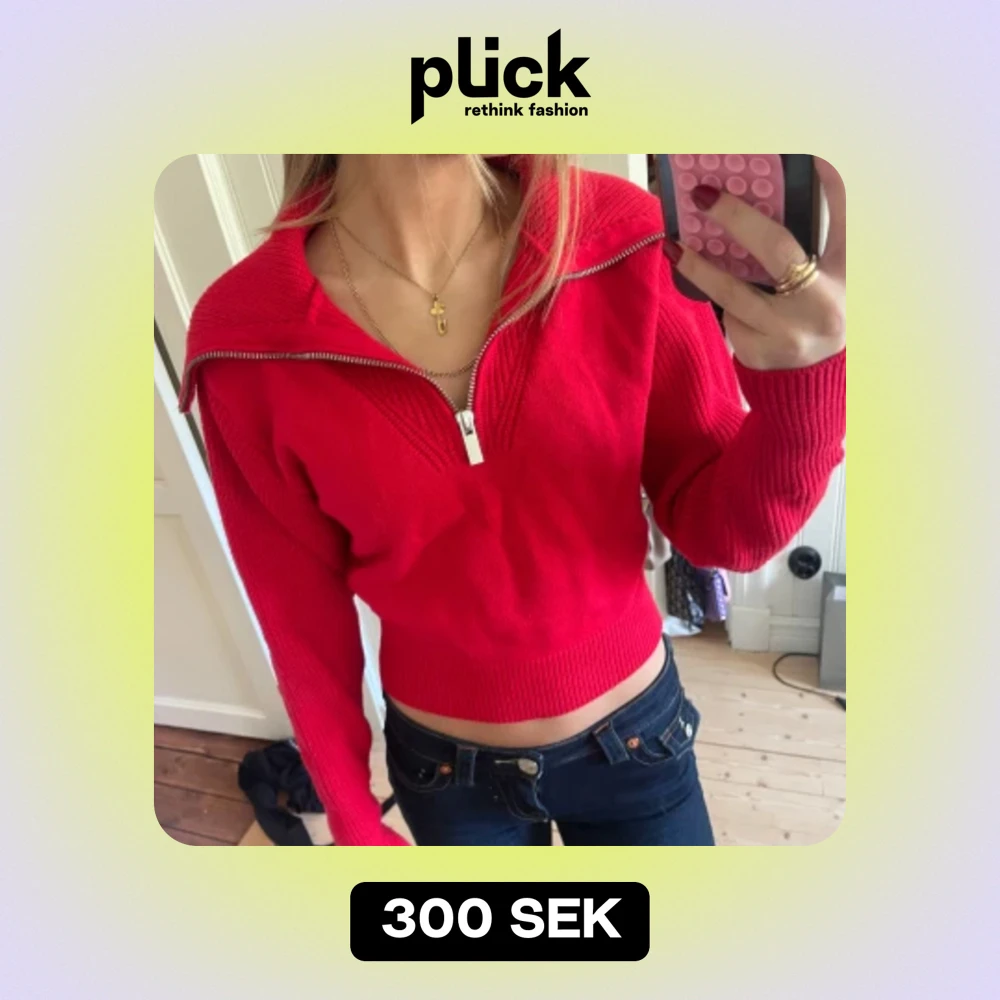 Jättefin röd stickad tröja med krage och halvzip från zara✨ använd en gång då jag inte tyckte jag passa i färgen tyvärr, storlek S men passar mig som är en XS vanligtvis🤩