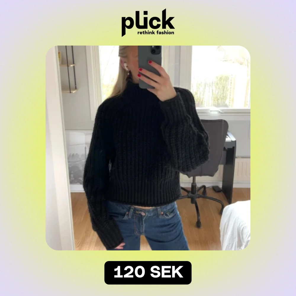 Svart stickad tröja från hm med halvpolo. Använd men fortfarande i bra skick💘