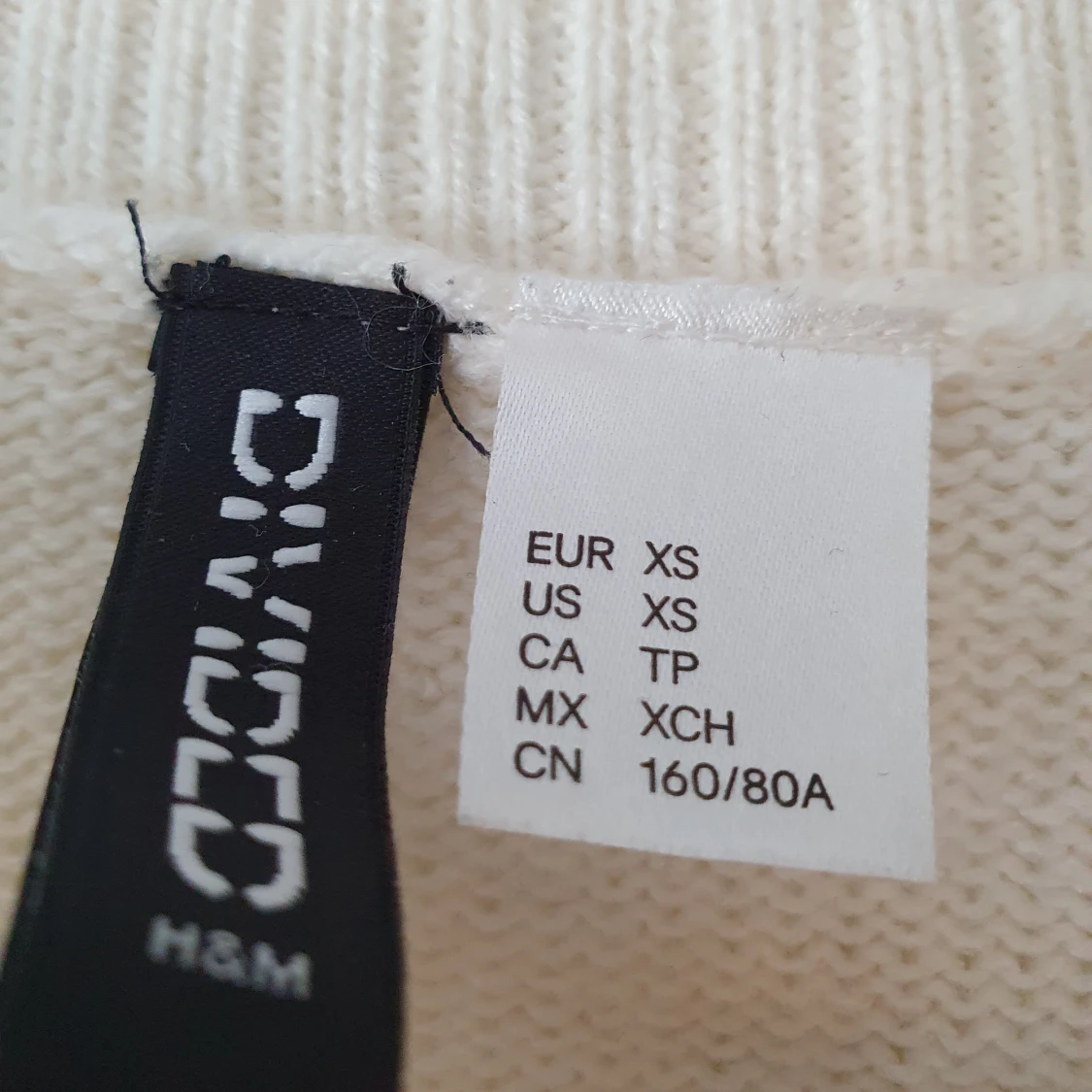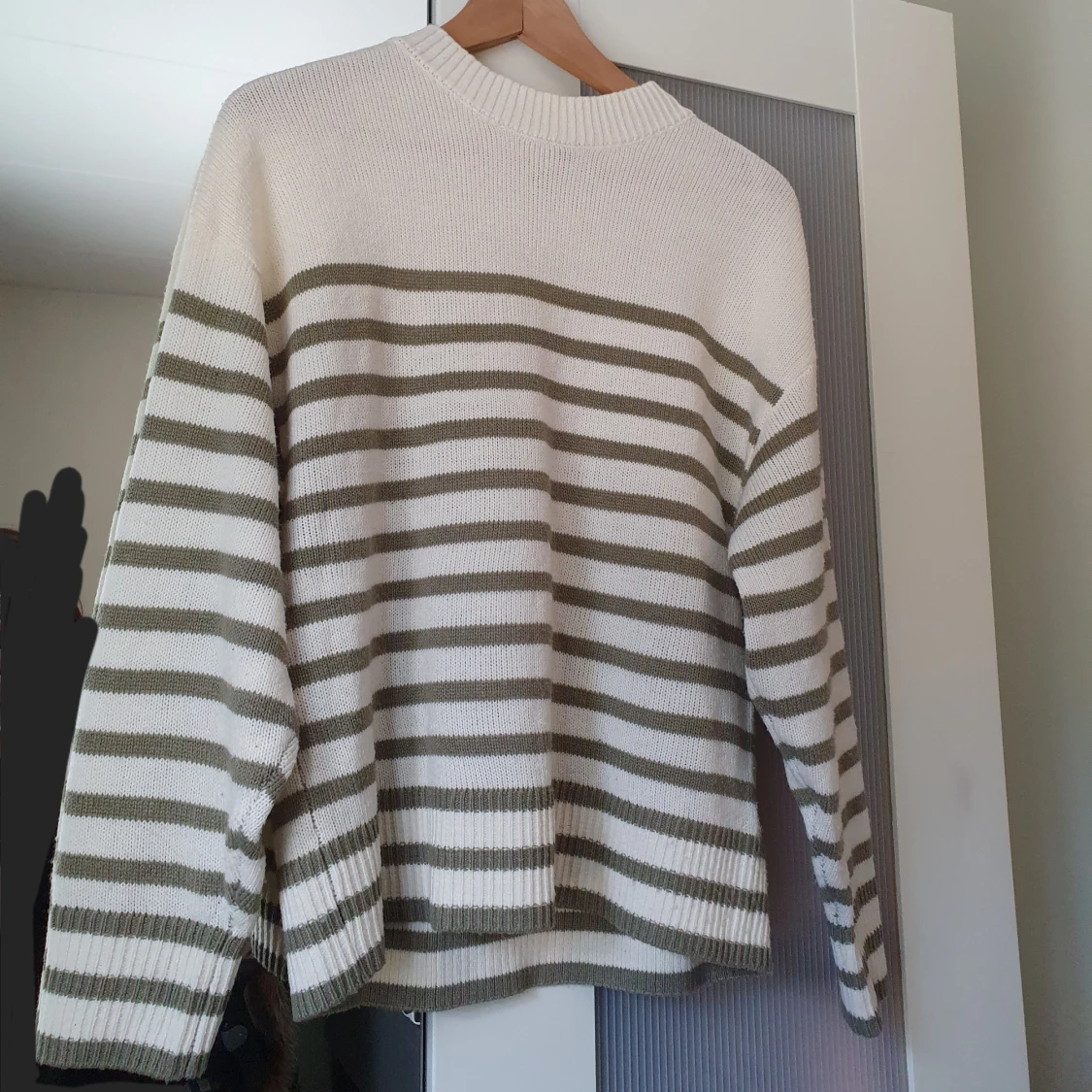 Vit stickad tröja med gröna ränder från hm i storlek xs.