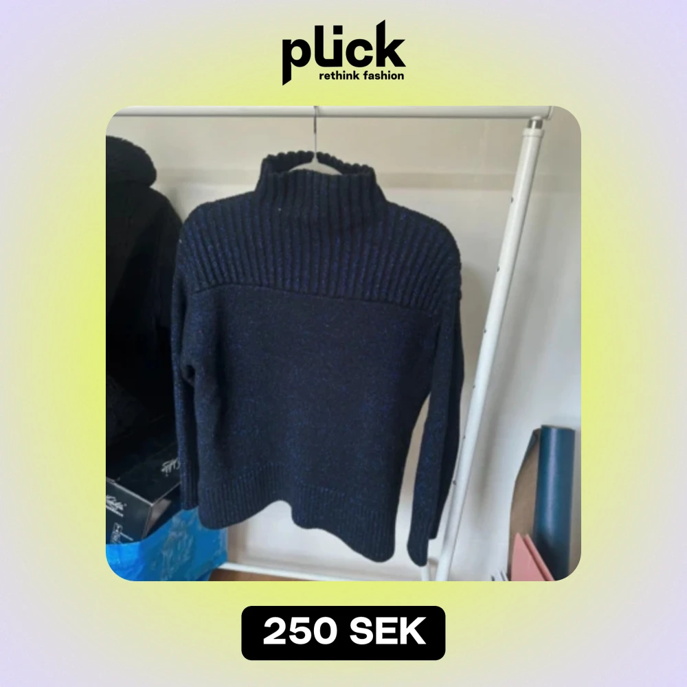 Jättefin tröja från COS som är i en superfin marinblå färg, använd 1 gång. Tjockt material och med glitter på. Kragen går lite upp på halsen.