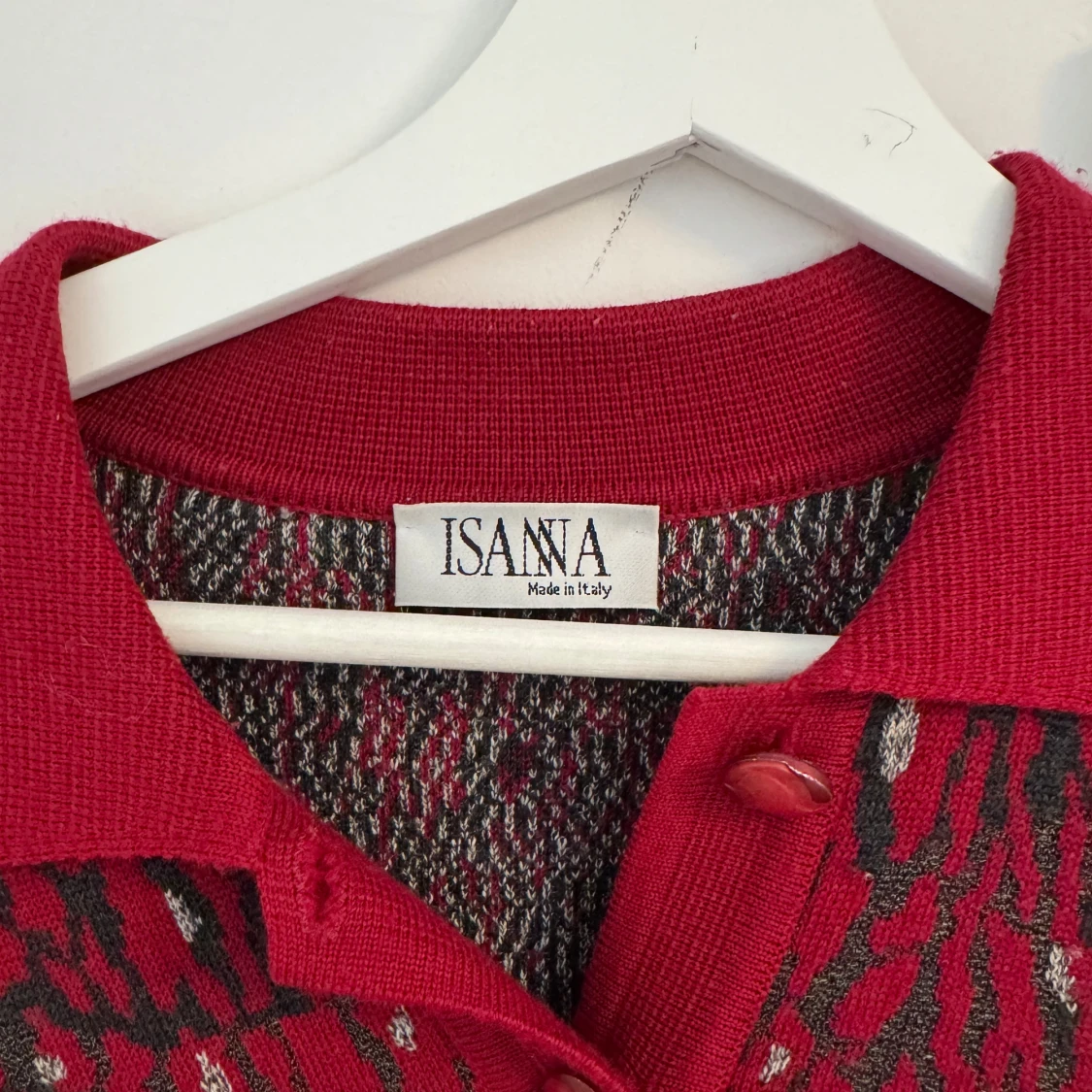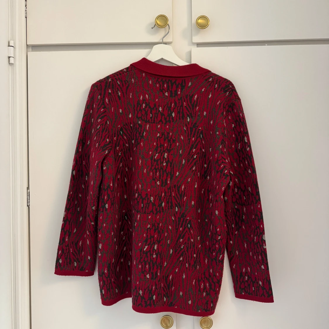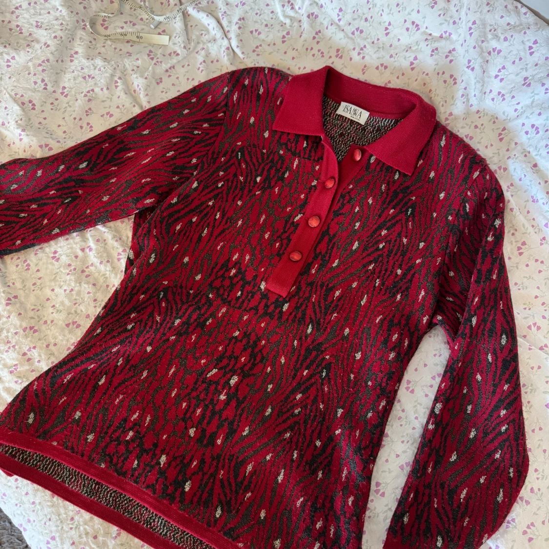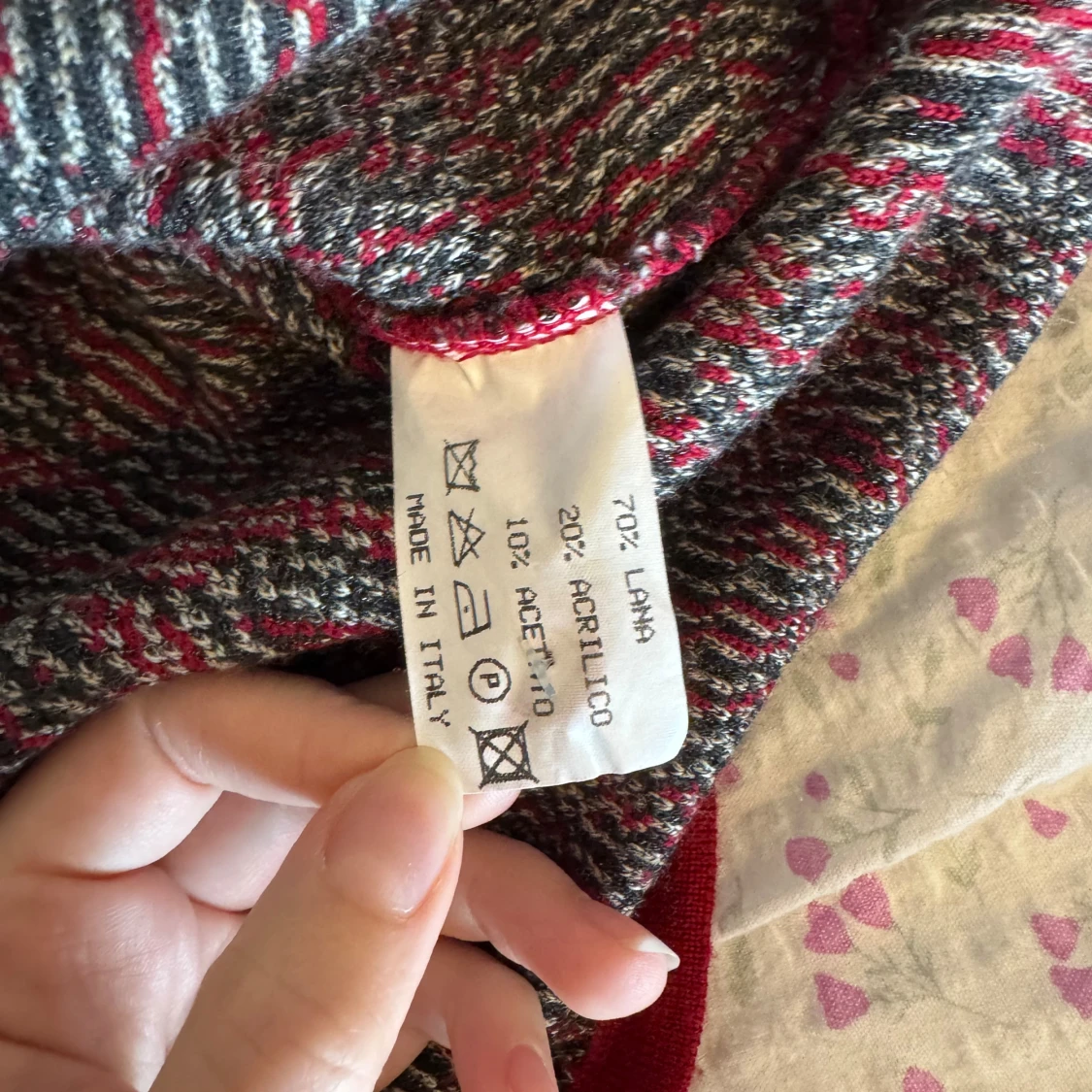 Röd zebra mönstrad tröja köpt i Italien. Den är vintage och gjord av ull. Säljs pga kommer inte till användning
