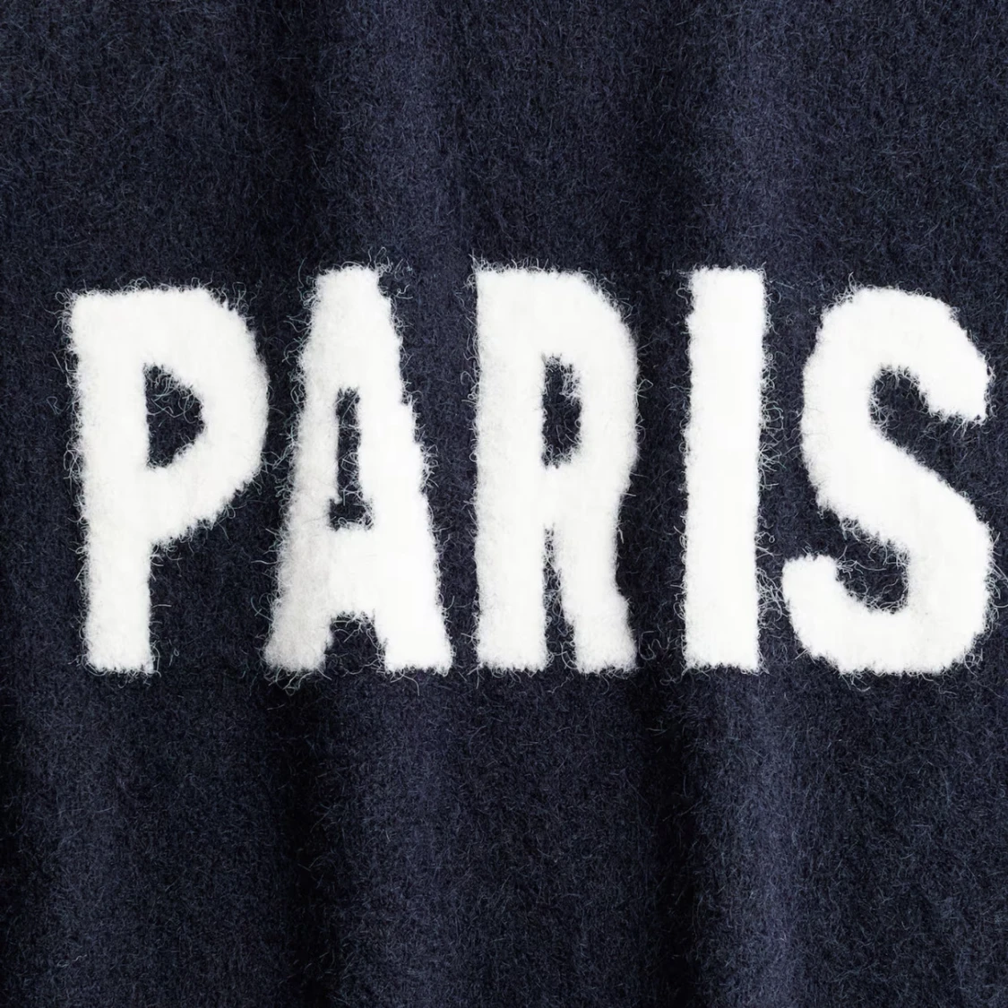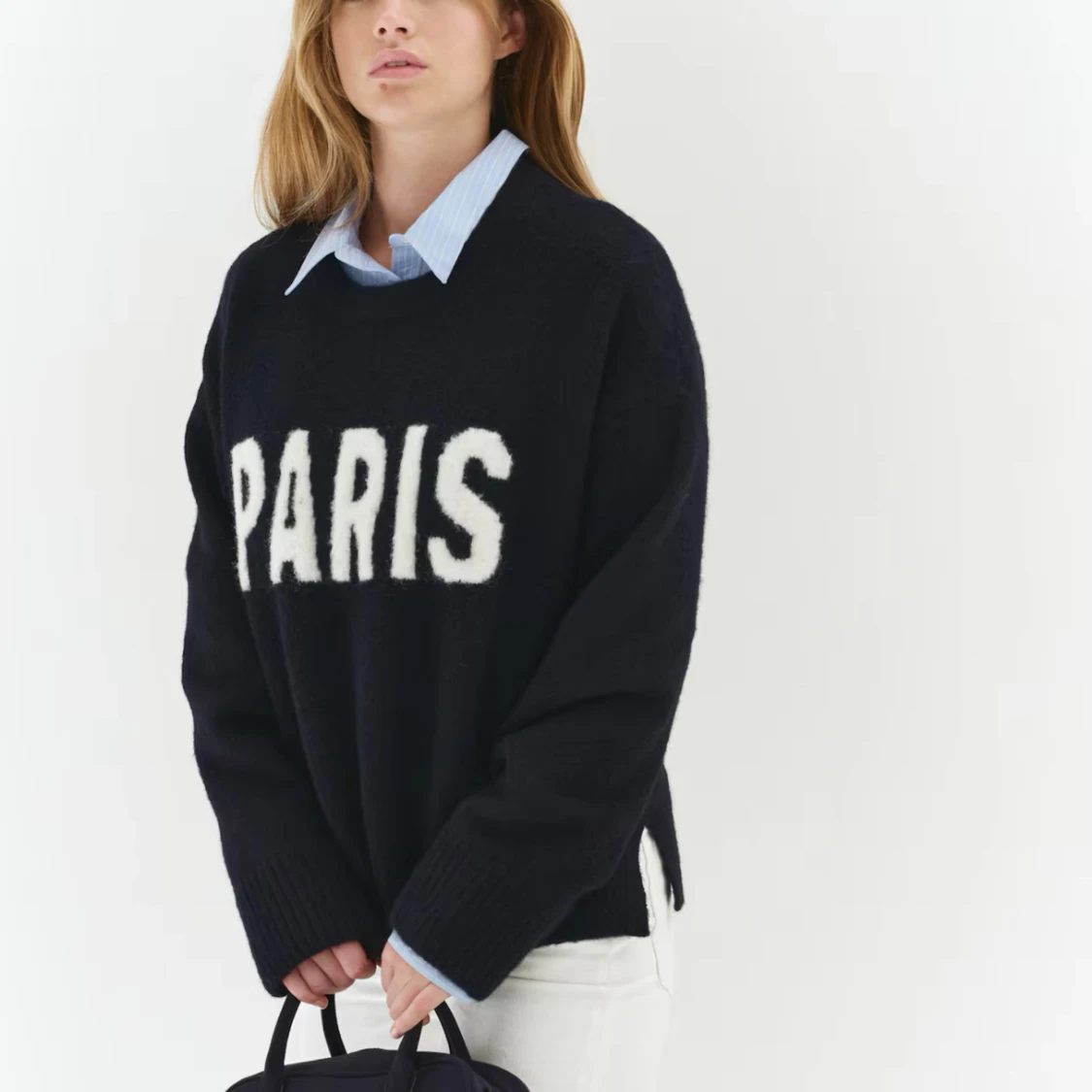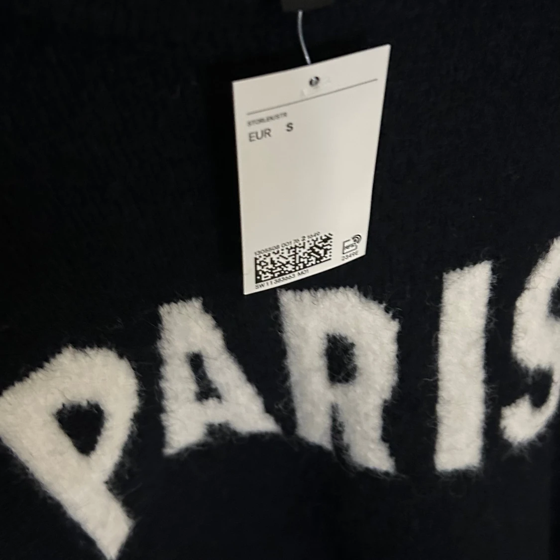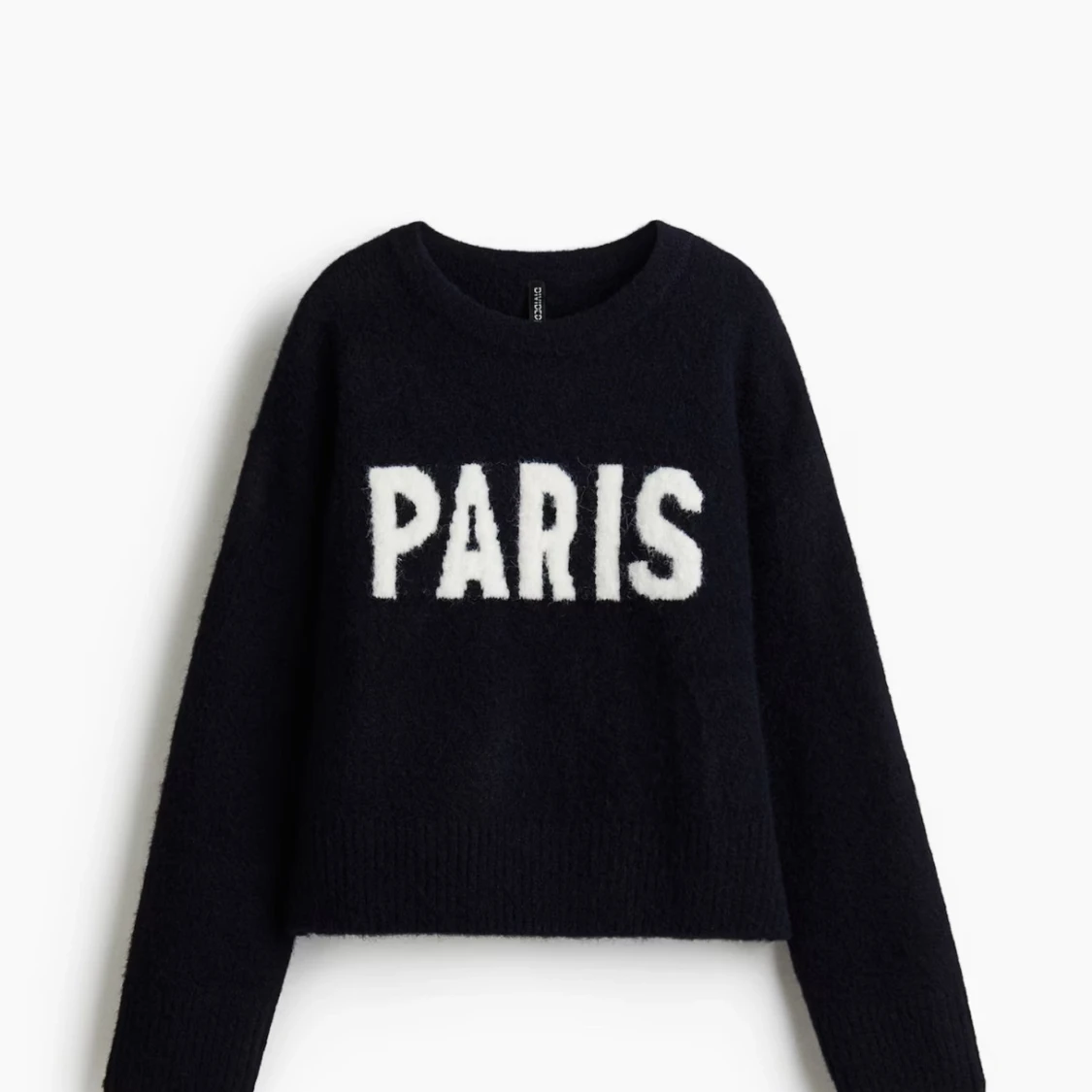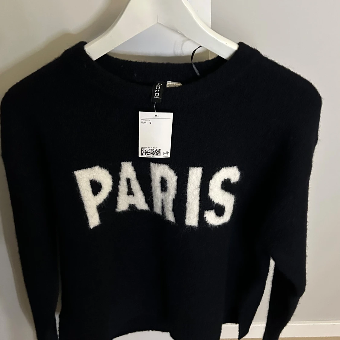 Stickad tröja med tryck PARIS, helt ny och döljer för att jag inte hunnit skicka tillbaka den. Nypris 350kr och slutsåld