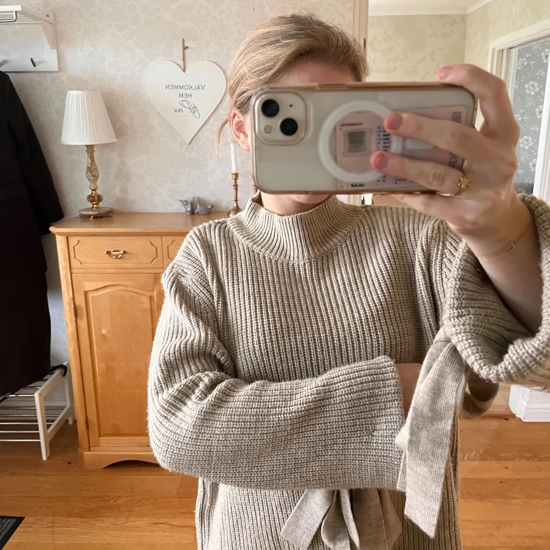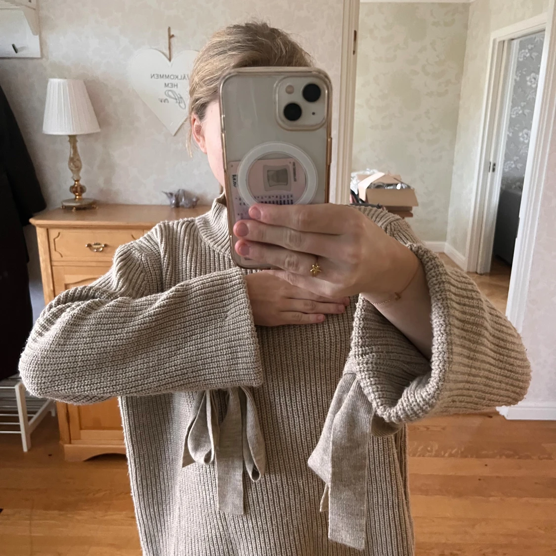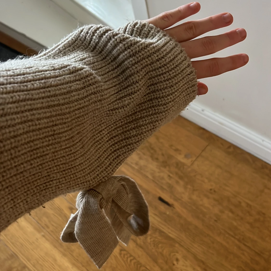Så fin stickad tröja med knytning vid ärmarna❤️i stl L men passar även S och Xs, Jag har vanligtvis xs/s🫶