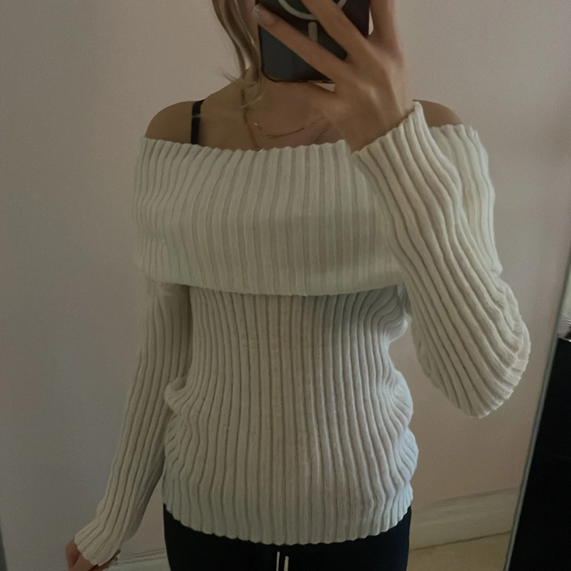 Jätte söt offshoulder stickad tröja. Är xs/s men den e jätte stretchig så passar nog allt från xs-l