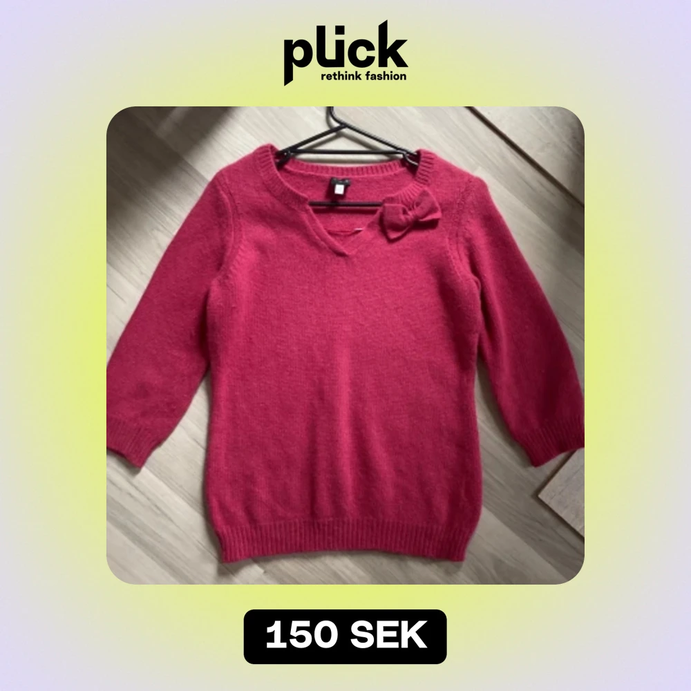 Så fin stickad rosa trekvarts ärmadtröja med en rosett 🎀