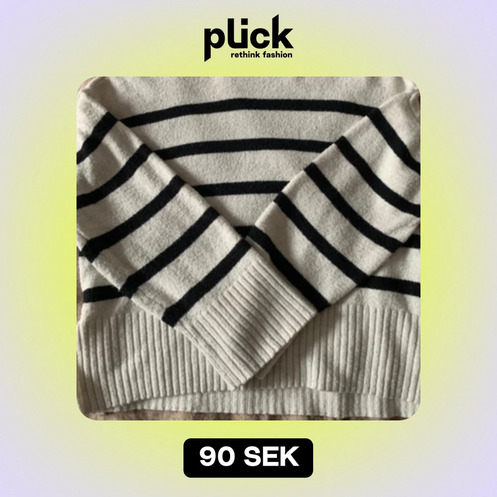 Randig stickad tröja från pull & bear. Använd några gånger. Ny pris är 300. Den har en liten fläck som inte går bort vid armen som ni ser på bild 3