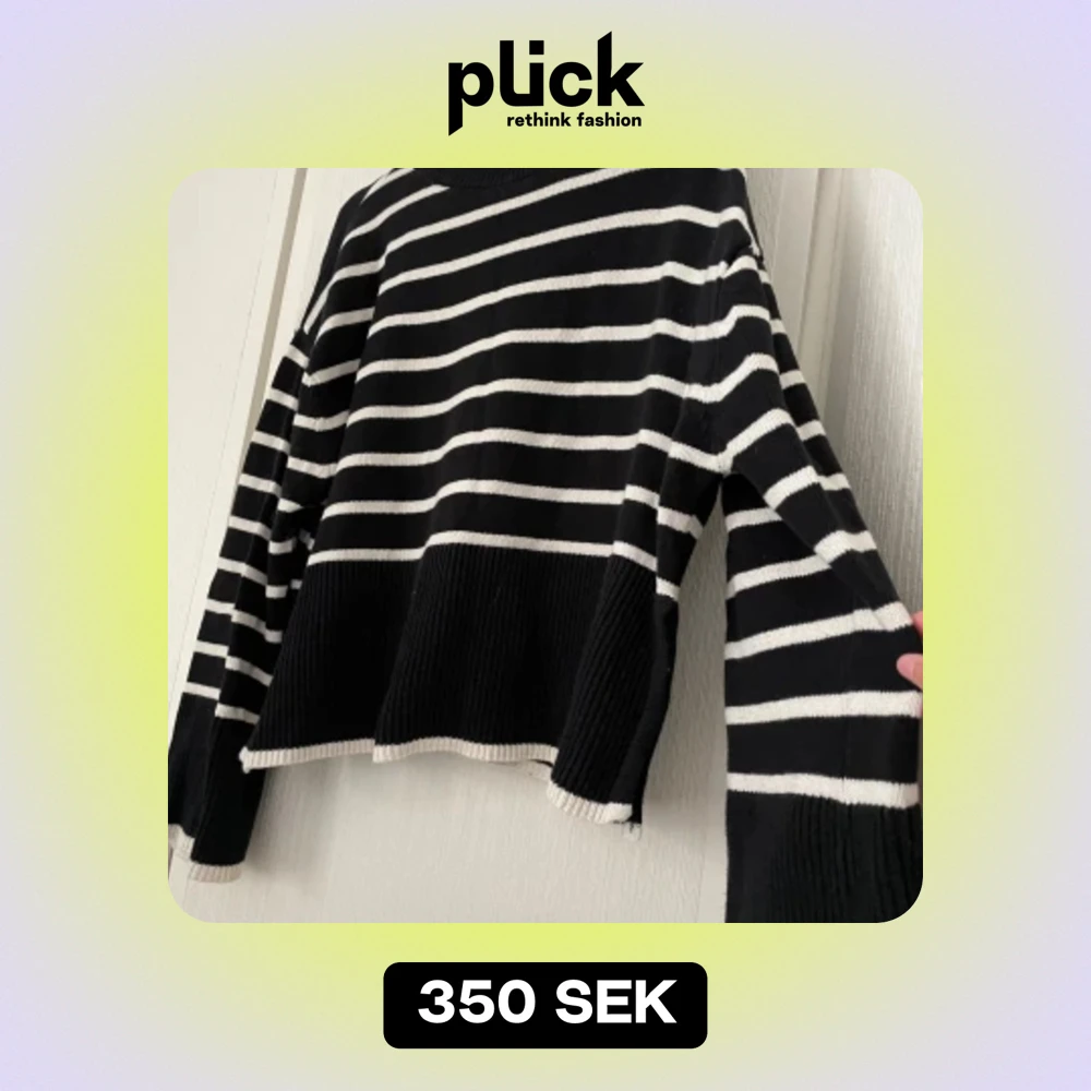 En randig stickad tröja från Gina tricot 🖤 Använd under en höst men slutade använda den🥲är fortfarande som ny!!🥰☺️storlek S🫶🏻