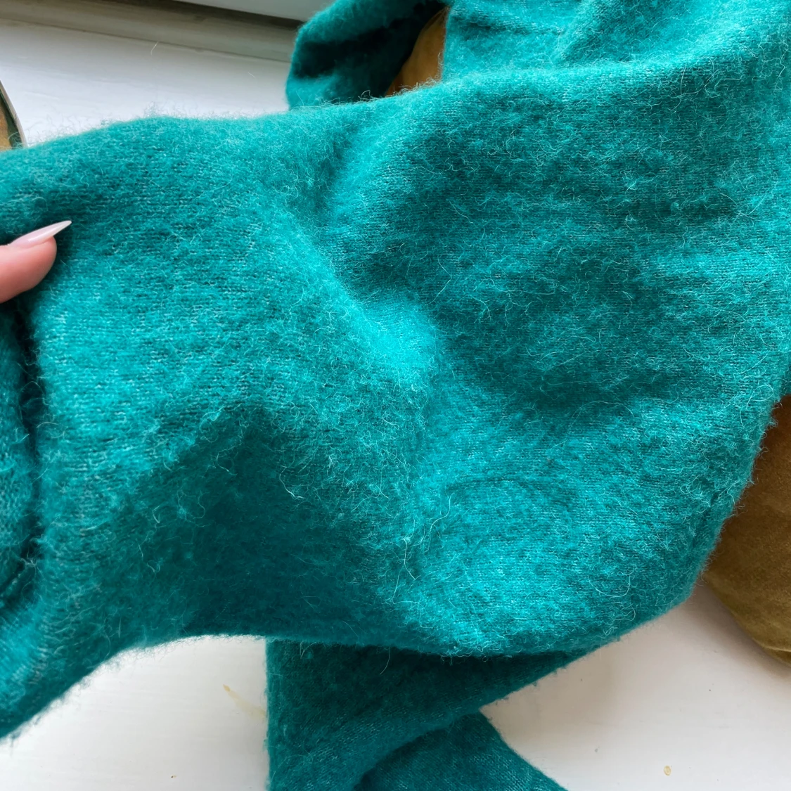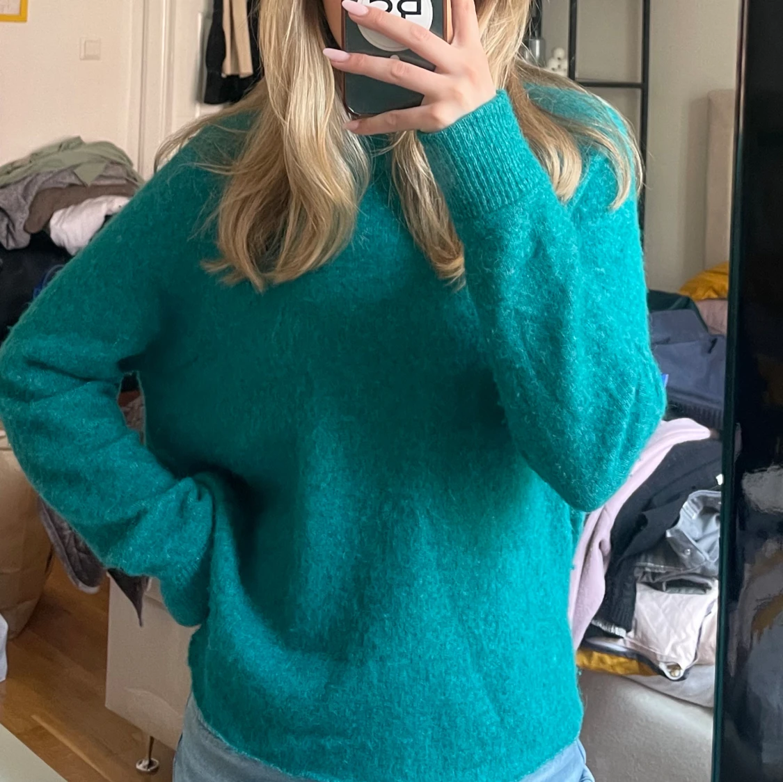 Superfin och skön ulltröja från Samsoe Samsoe. Sticks inte ett dugg. Den är i en superfin grön färg, vilket inte riktigt syns på kameran!💕storleken står inte på men om jag inte minns fel är det Strl M, men passar även mig som brukar ha S!