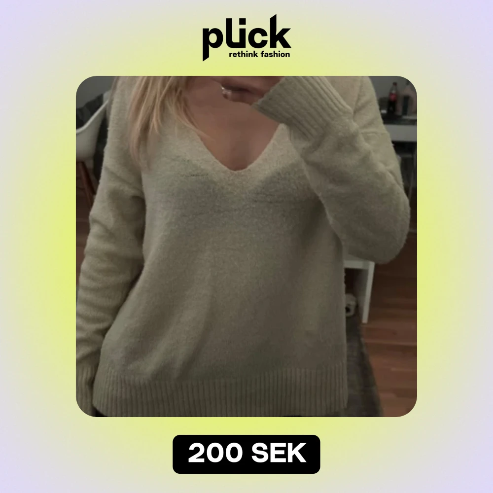 Beige stickad tröja. Elegant och går bra att både klä upp och ner.