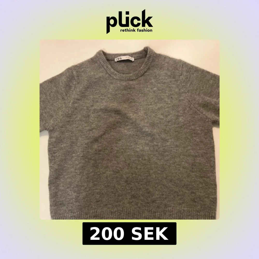 Grå stickad T-shirt från Zara. Storlek L men skulle passa xxs-m också, om man vill ha lite mindre cropped. Använd köp nu 💗
