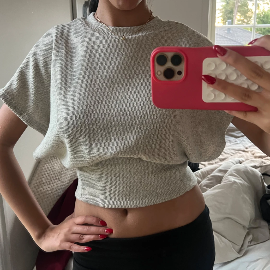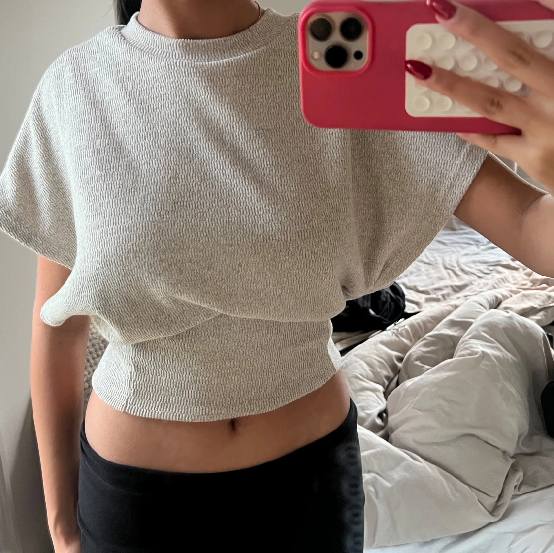 Stickad tshirt med indragen midja