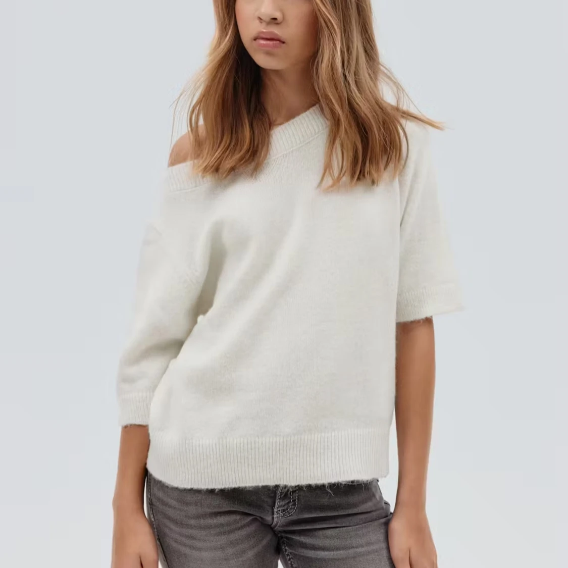 Superfin stuckad tshirt från gina young. Perfekt nu till hösten och vintern. Superfin som off-shoulder men även vanlig. Använd två gånger🩷