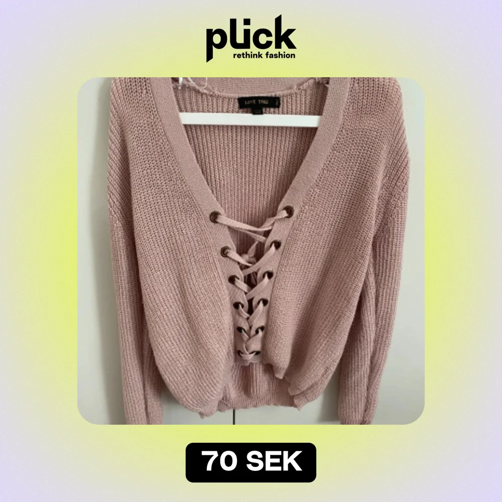 SĂ€ljer en superfin rosa stickad tröja frĂ„n Love Tree. Den har en snörning dĂ€r fram och Ă€r v-ringad. Perfekt för höst och vĂ„r. Tröjan Ă€r i bra skickđ