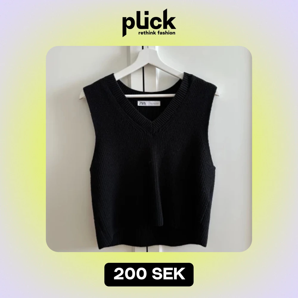 Stickad väst med v-ringning, från Zara i storlek S. Västen är i nyskick då den endast använts en gång.