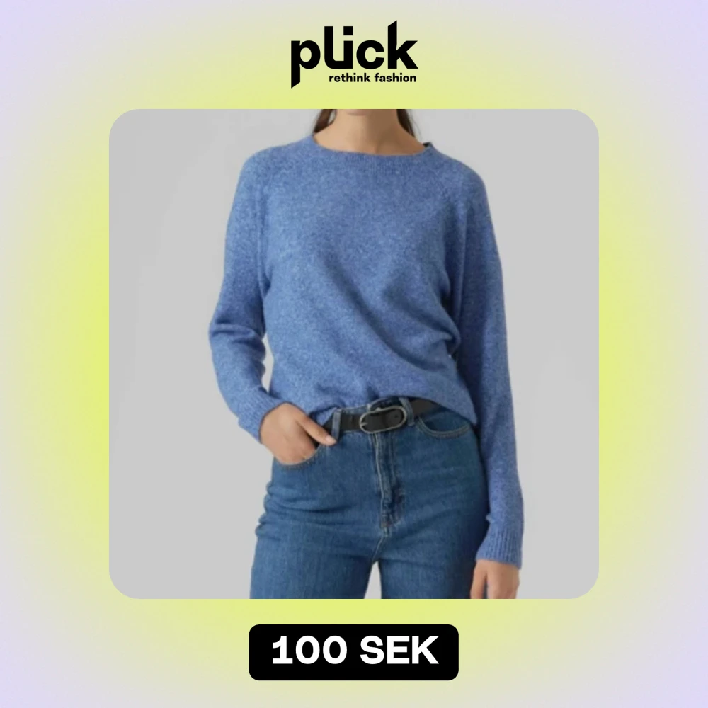 Superfin blå stickad tröja från VeroModa, den är knappt använd och sitter som på bilden. Säljer då den inte kommer till användning. Original pris, 289kr.