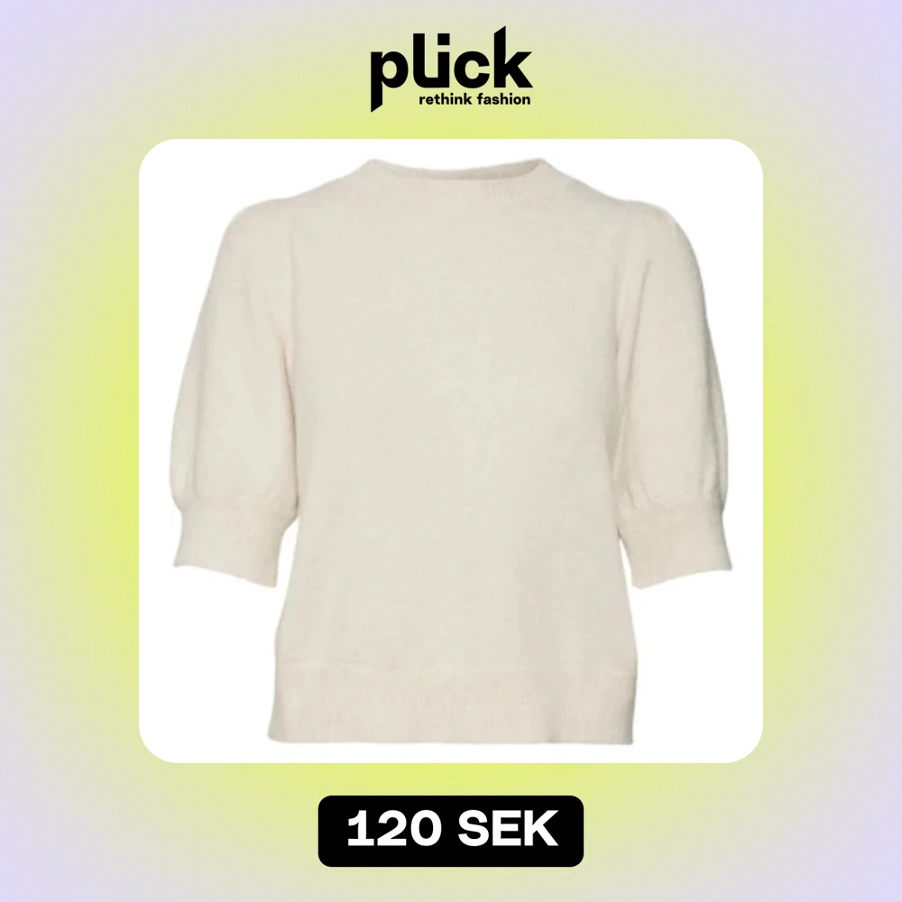 Stickad tröja med korta ärmar från vero moda. Beige/vit, Storlek xs och lite nopprig därav priset🫶🫶skriv för egna bilder