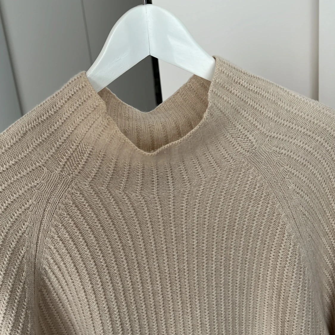 Jättefin beige stickad tröja från softgoat! Lös turtleneck!
