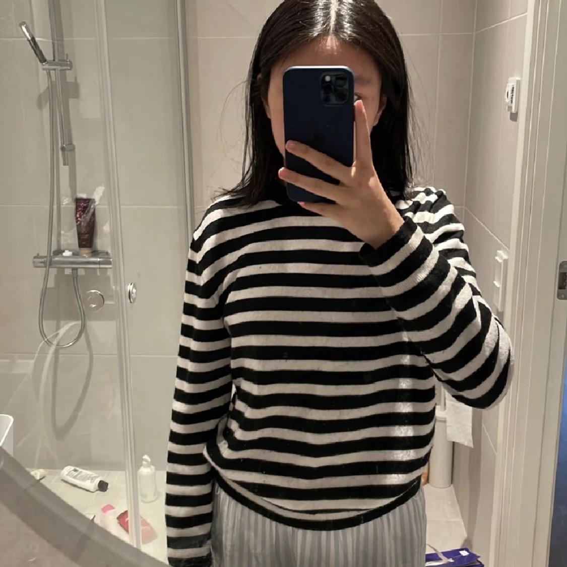 Svart vit randig stickad tröja från Zara❣️i bra skick men lite nopprig☺️