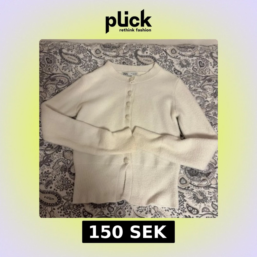 Vit Kofta från Zara med fina knappar! Använder inte så säljer hellre den till någon som kommer göra de ! Den är i väldigt bra skick och har inga defekter alls! Super skön kofta och väldigt söt 🥰