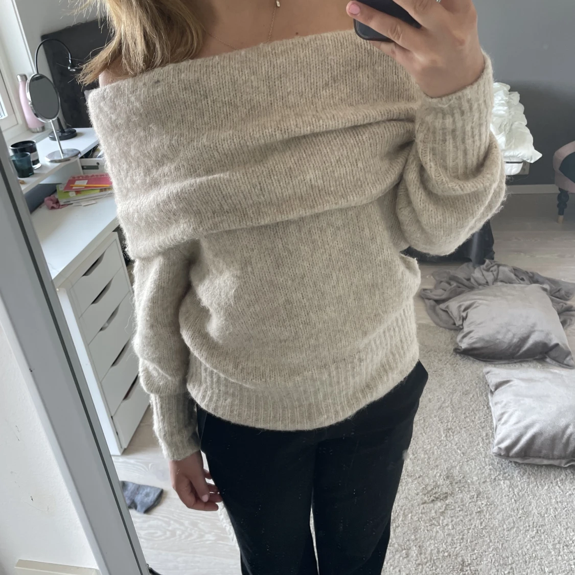 Stickad off-shoulder tröja