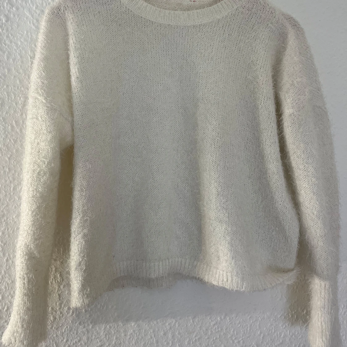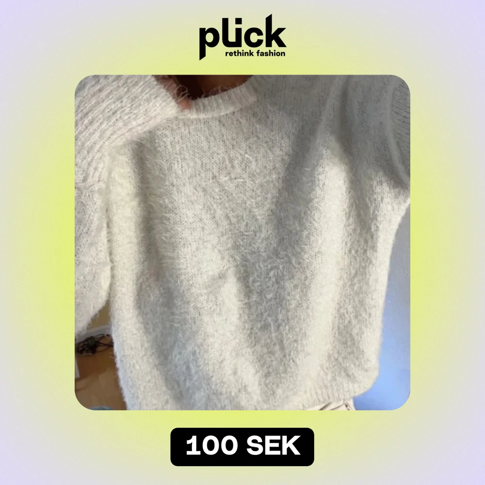 Lurvig stickad tröja i vit. Köpte på Plick men kommer ej till användning då jag har många liknande tröjor.