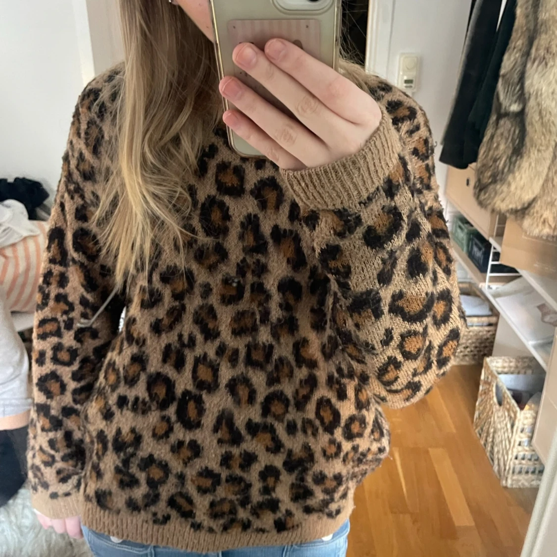 Stickad leopardtröja i strl 158/164 men sitter som xs/s💗skriv vid intresse