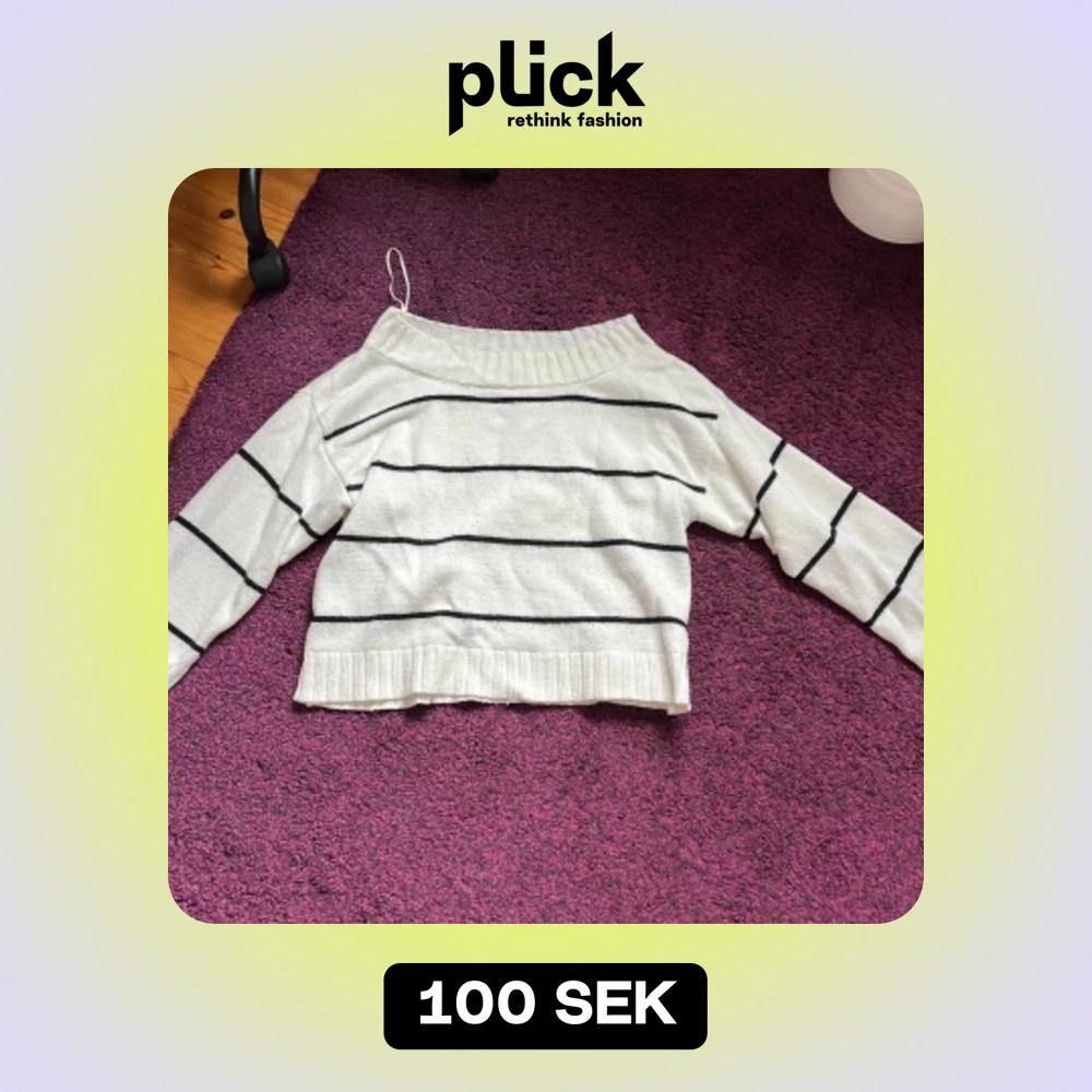 Randig stickad tröja från Hm! Lite offshoulder. Pris diskuterbart 🫶