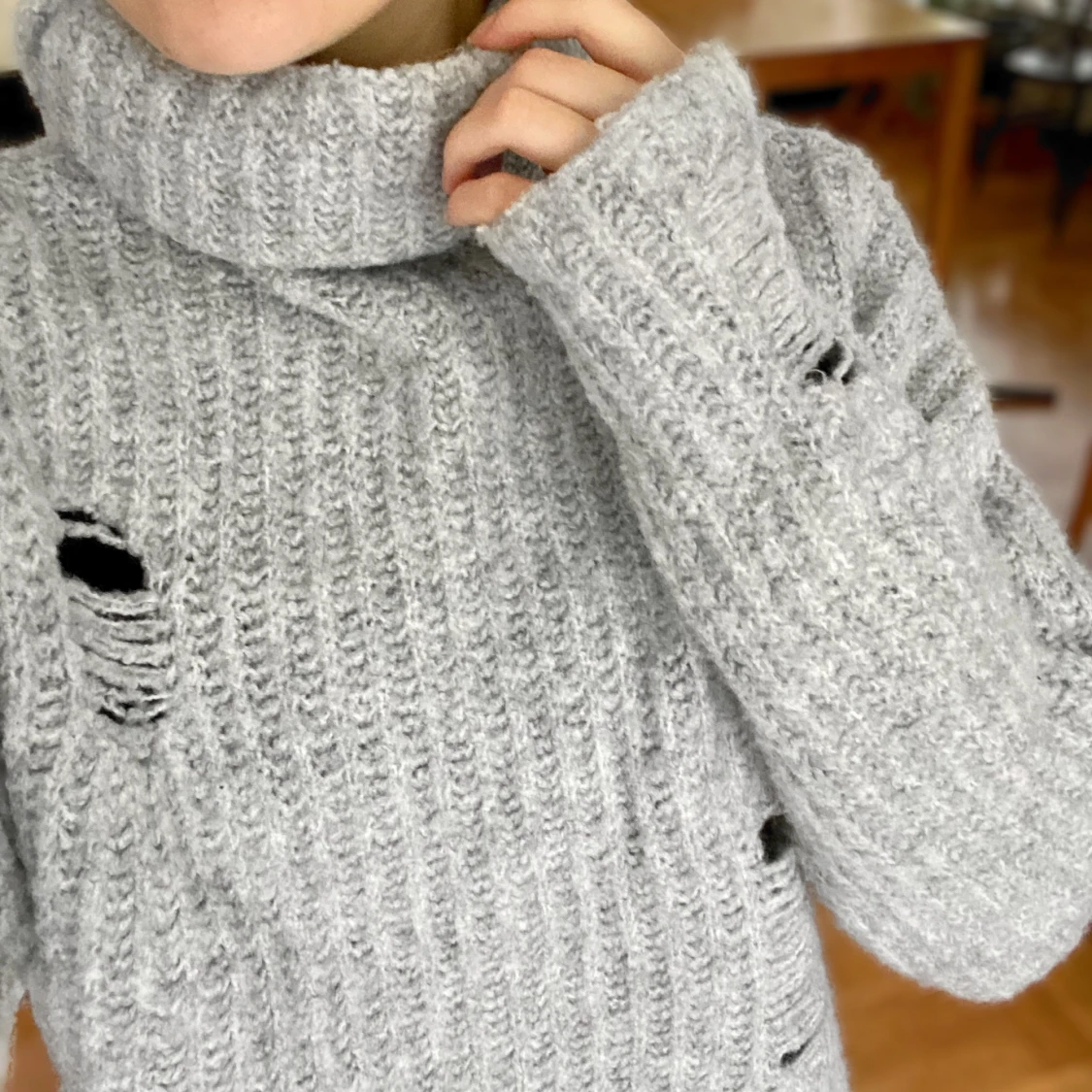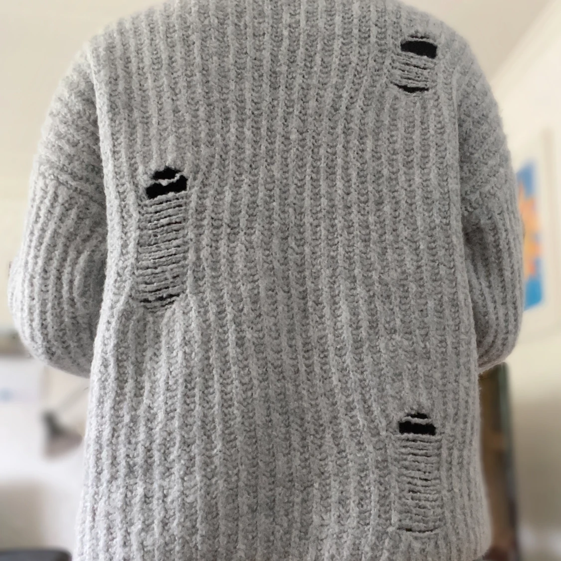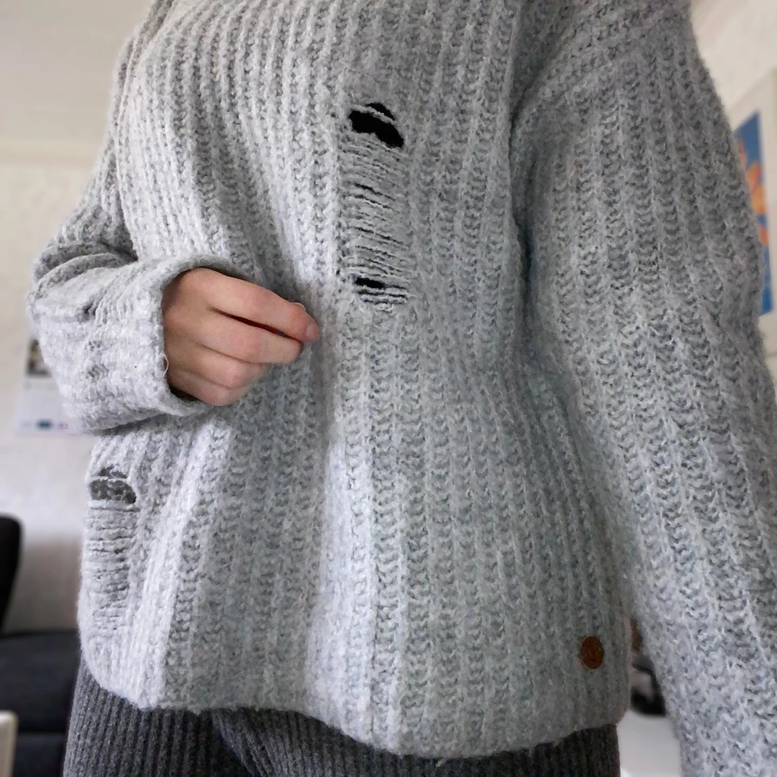 Varm stickad tröja med coola hål-detaljer. Säljs i fint skick. (På bilden har jag en svart tröja under)